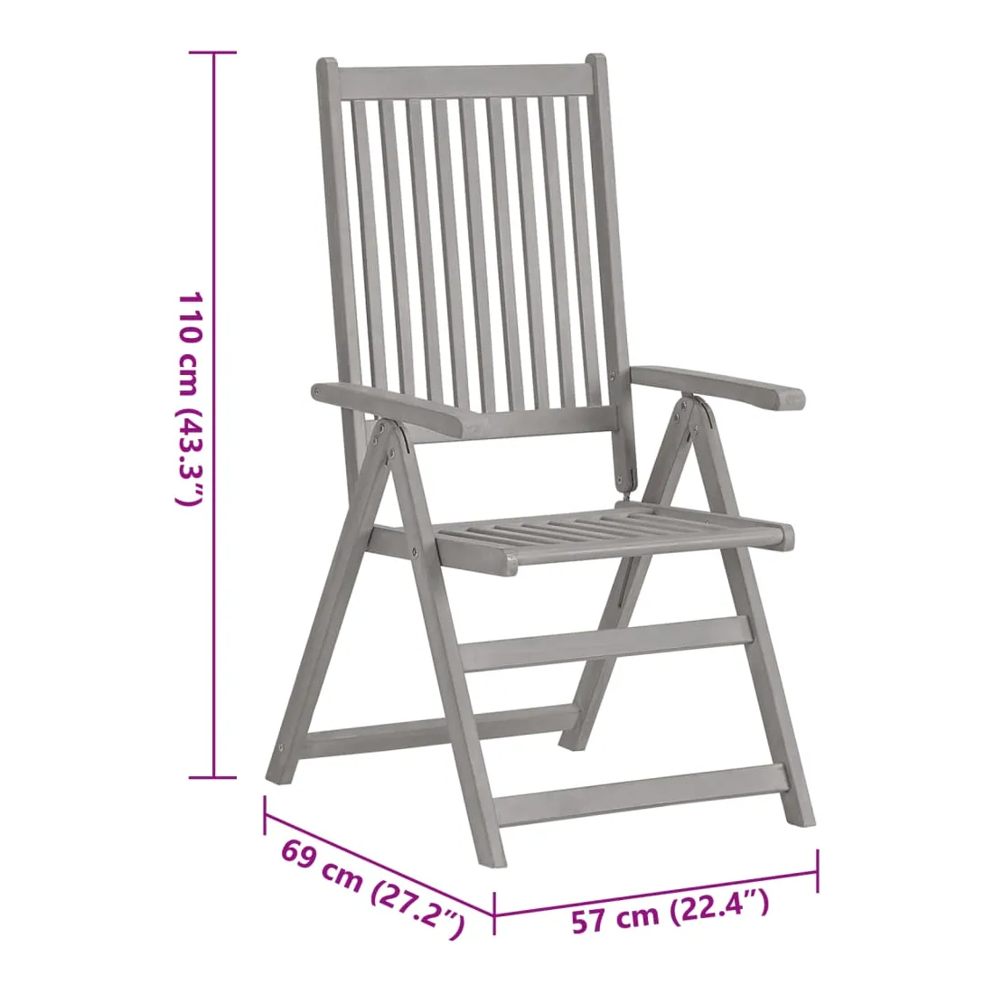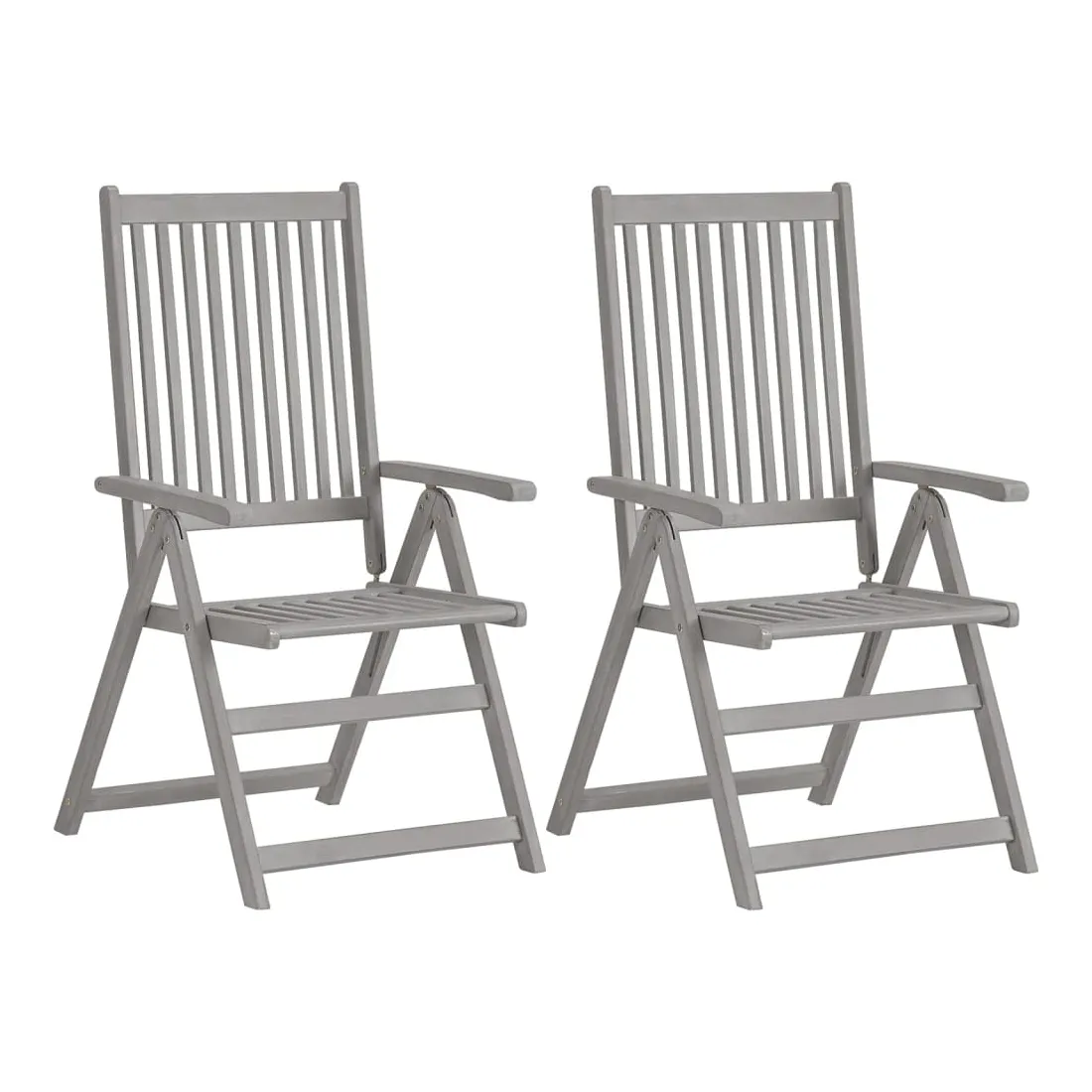 Cet ensemble de chaises inclinables de jardin à la mode avec coussins augmente le confort de votre espace extérieur ! Ces fauteuils sont en bois d'acacia massif à la finition délavé gris, un bois dur aux grains denses. Ces chaises d'extérieur magnifiquement conçues sont stables, durables et accrocheuses. Le dossier de la chaise peut être ajusté en 5 réglages d'inclinaison, de sorte que vous puissiez toujours trouver la position la plus confortable selon vos préférences. De plus, les coussins fournis offrent un confort supplémentaire lors de la relaxation. Ils sont fabriqués en 100 % polyester qui a été traité pour le rendre imperméable. Chaque coussin a une sangle élastique et deux jeux de cordes pour le fixer fermement sur la chaise. Ces chaises en bois sont parfaites pour manger avec