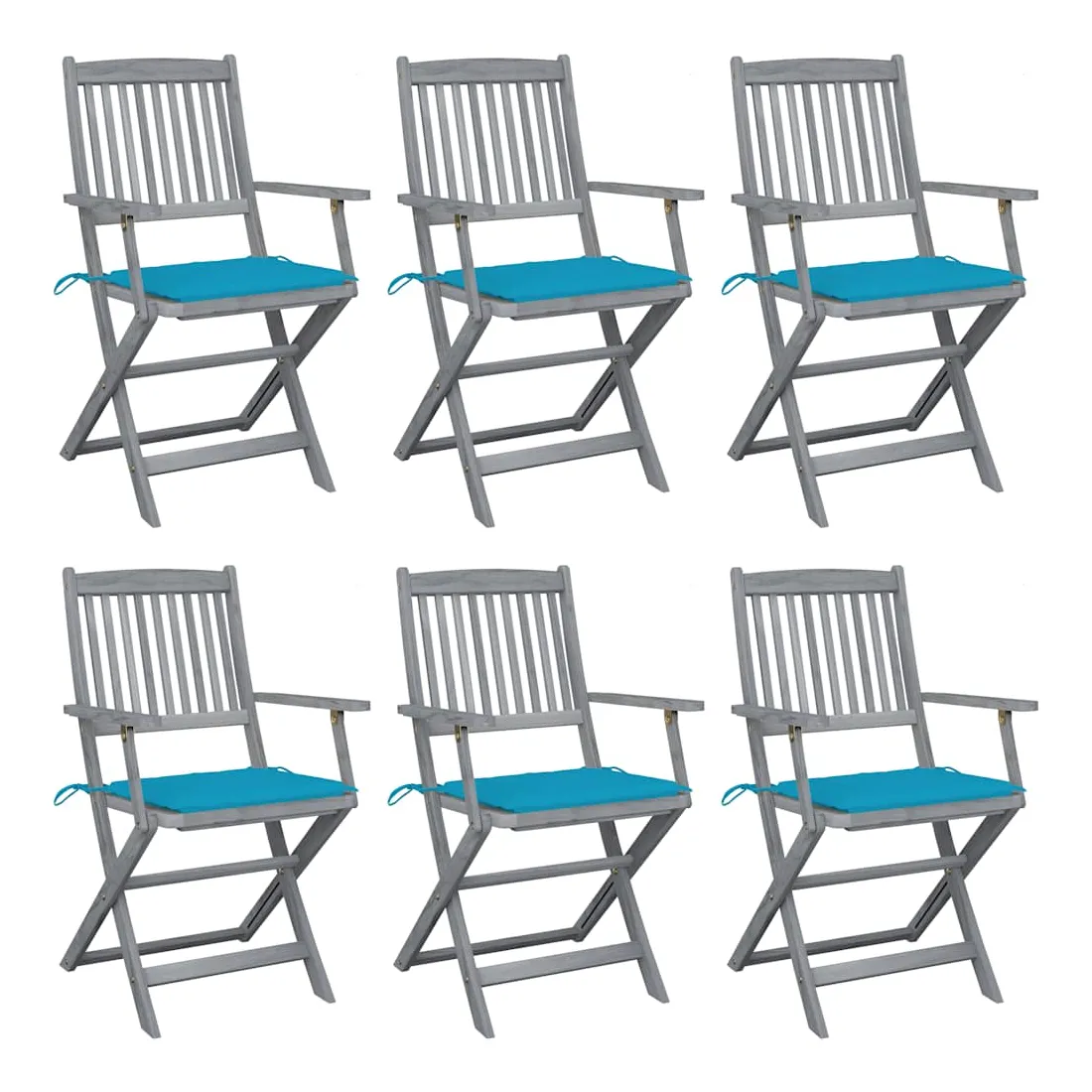 Chaises pliables d'extérieur lot de 6 et coussins Bois d'acacia