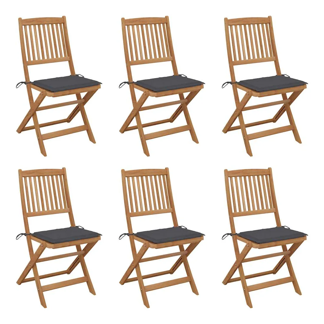 Chaises pliables de jardin lot de 6 avec coussins Bois d'acacia