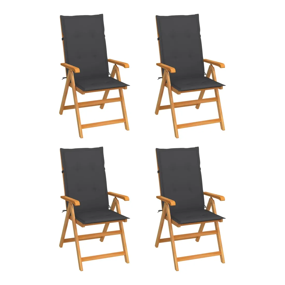 Chaises de jardin lot de 4 avec coussins anthracite Teck solide
