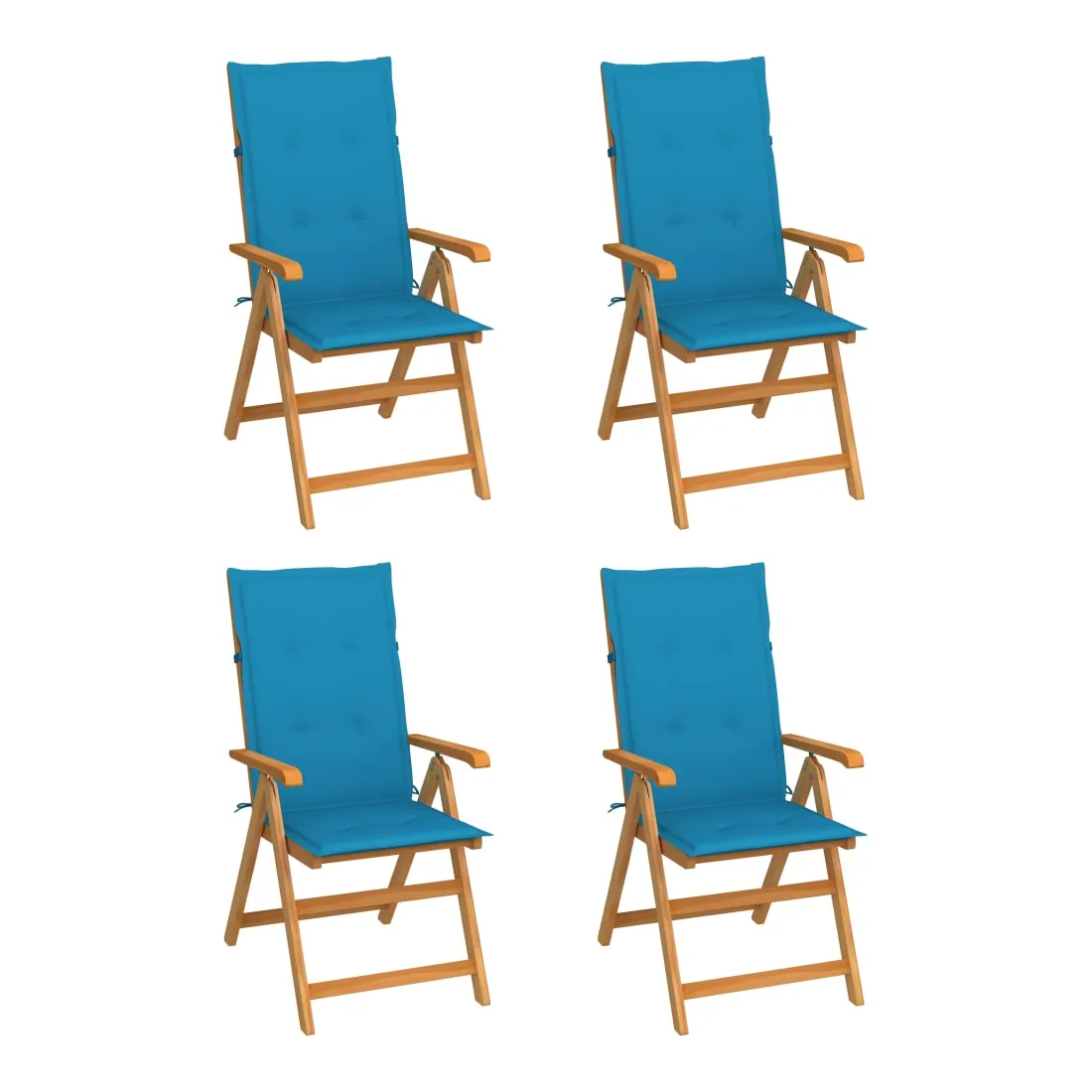 Chaises de jardin lot de 4 avec coussins bleu Bois teck solide