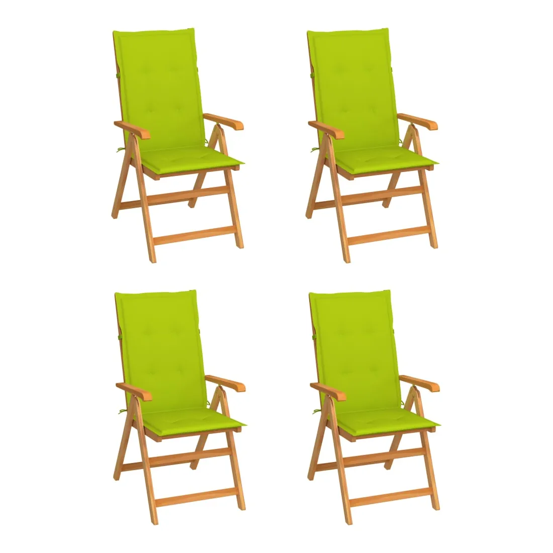 Chaises de jardin lot de 4 avec coussins vert vif Bois de teck