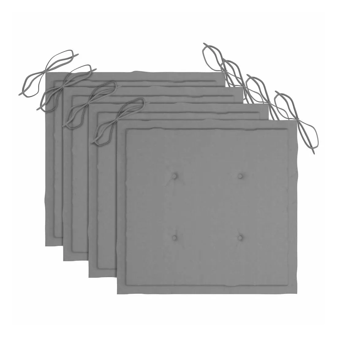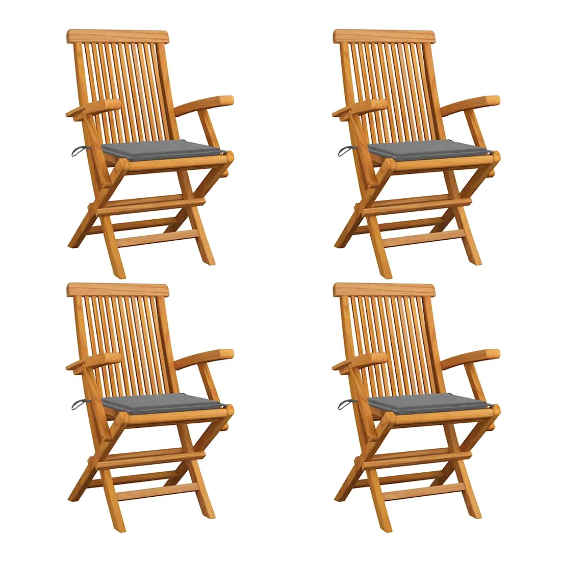 Cet ensemble de chaises de jardin en bois se compose de 4 pièces et est destiné à être un excellent supplément à votre jardin, terrasse ou patio. Vous pouvez vous détendre et discuter avec la famille et les amis ou profiter du bon temps. Fabriquée en bois dur de teck extrêmement durable, cette pièce de meuble en teck a été chevronnée, séchée au four puis finement poncée pour lui donner un aspect très lisse. Le bois de teck est connu pour sa résistance exceptionnelle aux intempéries, ce qui le rend bien plus adapté aux meubles de jardin que tout autre type de bois. Le bois de teck est le choix idéal si vous souhaitez acheter une pièce de meubles de jardin durable. La surface poncée est facile à nettoyer avec un chiffon humide. Ces chaises d'extérieur sont également légères, ce qui les rend complètement flexibles et faciles à déplacer. Les chaises en bois peuvent être pliées pour gagner de la place lorsqu'elles ne sont pas utilisées. De plus, les coussins de siège inclus offrent également un confort d'assise supplémentaire.