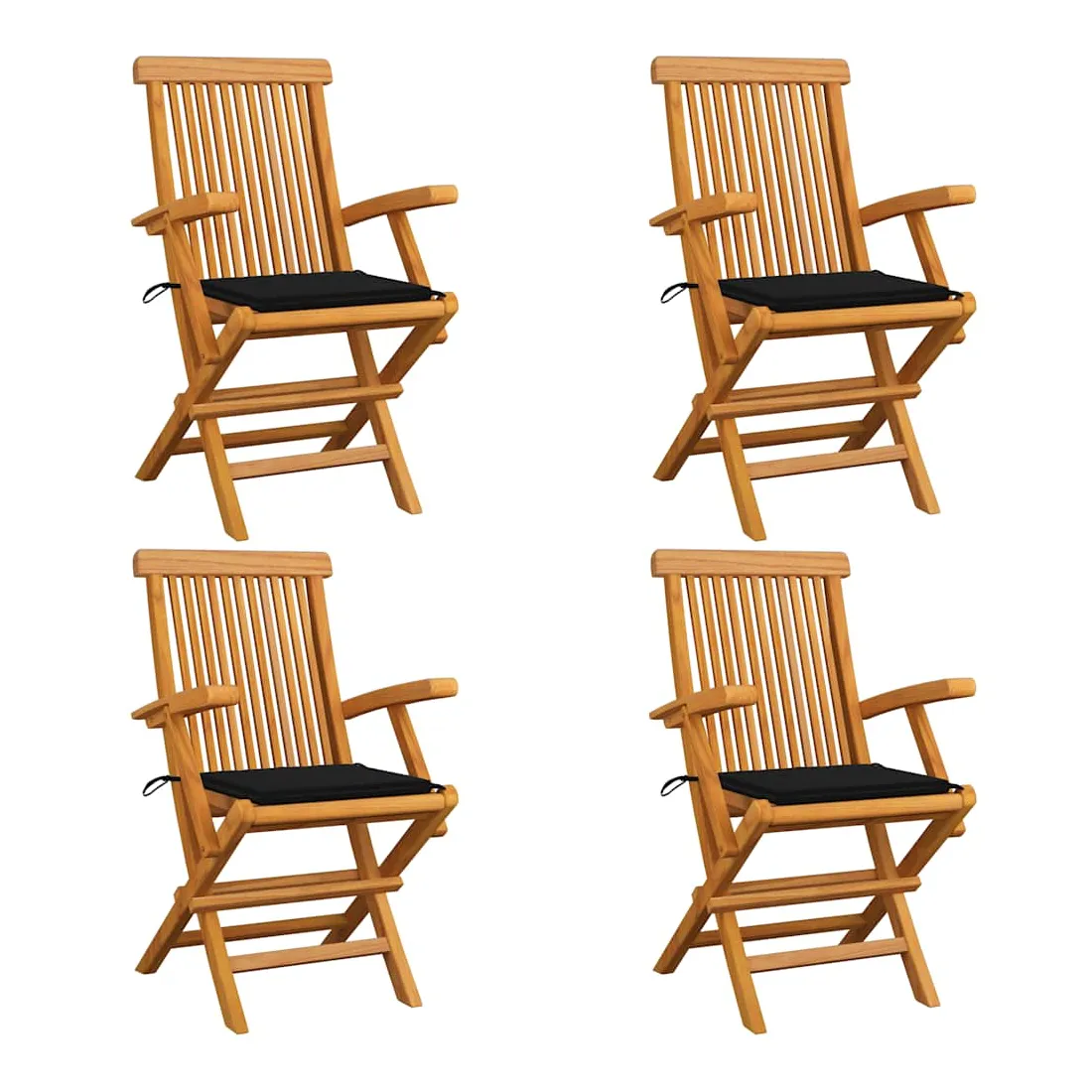 Cet ensemble de chaises de jardin en bois se compose de 4 pièces et est destiné à être un excellent supplément à votre jardin, terrasse ou patio. Vous pouvez vous détendre et discuter avec la famille et les amis ou profiter du bon temps. Fabriquée en bois dur de teck extrêmement durable, cette pièce de meuble en teck a été chevronnée, séchée au four puis finement poncée pour lui donner un aspect très lisse. Le bois de teck est connu pour sa résistance exceptionnelle aux intempéries, ce qui le rend bien plus adapté aux meubles de jardin que tout autre type de bois. Le bois de teck est le choix idéal si vous souhaitez acheter une pièce de meubles de jardin durable. La surface poncée est facile à nettoyer avec un chiffon humide. Ces chaises d'extérieur sont également légères, ce qui les rend complètement flexibles et faciles à déplacer. Les chaises en bois peuvent être pliées pour gagner de la place lorsqu'elles ne sont pas utilisées. De plus, les coussins de siège inclus offrent également un confort d'assise supplémentaire.