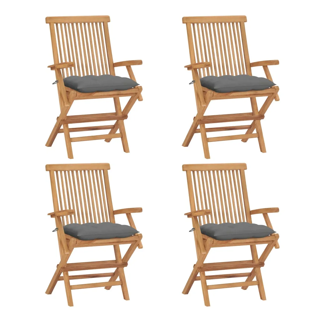Cet ensemble de chaises de jardin en bois se compose de 4 pièces et est destiné à être un excellent supplément à votre jardin, terrasse ou patio. Vous pouvez vous détendre et discuter avec la famille et les amis ou profiter du bon temps. Fabriquée en bois dur de teck extrêmement durable, cette pièce de meuble en teck a été chevronnée, séchée au four puis finement poncée pour lui donner un aspect très lisse. Le bois de teck est connu pour sa résistance exceptionnelle aux intempéries, ce qui le rend bien plus adapté aux meubles de jardin que tout autre type de bois. Le bois de teck est le choix idéal si vous souhaitez acheter une pièce de meubles de jardin durable. La surface poncée est facile à nettoyer avec un chiffon humide. Ces chaises d'extérieur sont également légères, ce qui les rend complètement flexibles et faciles à déplacer. Les chaises en bois peuvent être pliées pour gagner de la place lorsqu'elles ne sont pas utilisées. De plus, les coussins de siège inclus bien rembourrés offrent également un confort d'assise supplémentaire.
