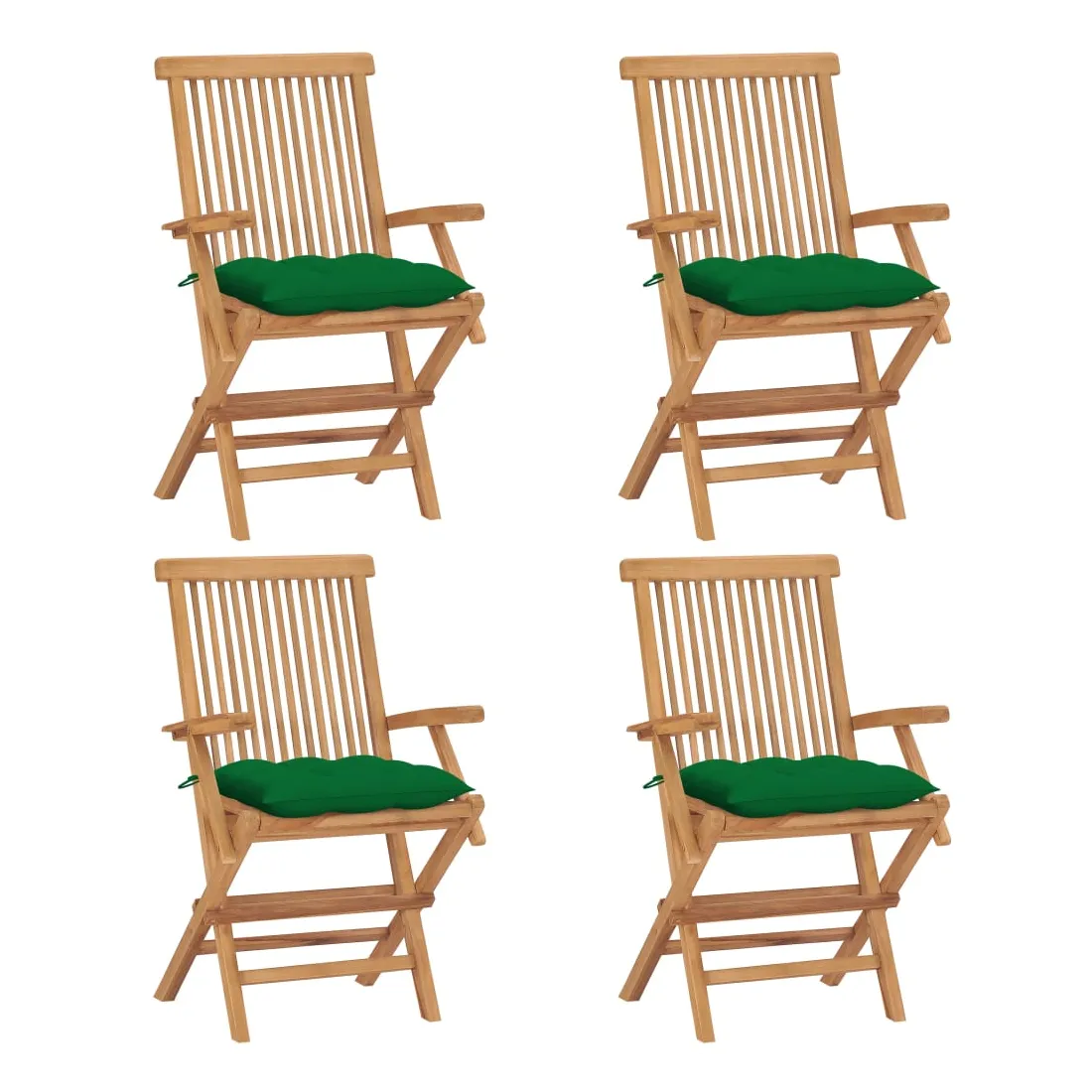 Chaises de jardin et coussins vert lot de 4 Bois de teck massif