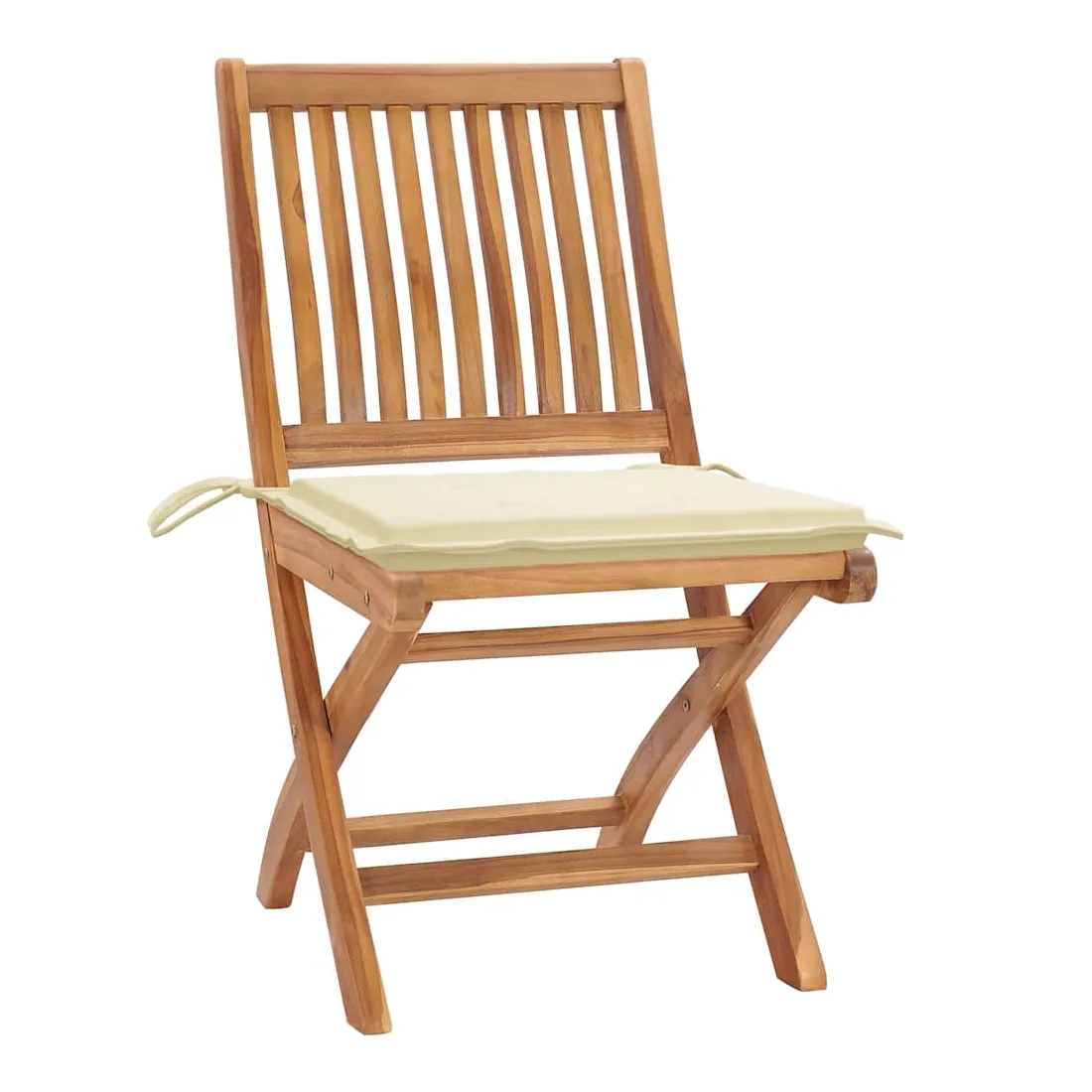 Cet ensemble de chaises de jardin en bois présente un design intemporel. Les chaises d’extérieur conviennent à tous les environnements, tels que les maisons, les bureaux, les bars et les cafés, grâce à leur design simple mais élégant. Fabriqué en bois dur de teck extrêmement durable, cet ensemble de meubles en teck a été chevronné, séché au four puis finement poncé pour lui donner un aspect très lisse. Le bois de teck est connu pour sa résistance exceptionnelle aux intempéries, ce qui le rend bien plus adapté aux meubles de jardin que tout autre type de bois. Le bois de teck est le choix idéal si vous souhaitez acheter un meuble de jardin durable. Grâce à la surface sablée, les chaises de salle à manger sont résistantes aux intempéries et faciles à nettoyer. Elles peuvent également être pliées pour économiser de l’espace de stockage lorsqu'elles ne sont pas utilisées. De plus, les coussins fournis offrent un confort supplémentaire. Chaque coussin dispose de 2 ensembles de cordes pour le fixer solidement sur la chaise. Remarque : afin de prolonger la durée de vie de vos meubles d'extérieur, nous vous recommandons de les nettoyer régulièrement et de ne pas les laisser à l'extérieur sans protection inutilement.Nettoyage : utiliser une solution savonneuse douceStockage : si possible, stockez dans un endroit frais et sec à l'intérieur. Si le produit est stocké à l'extérieur, protégez-le avec une housse imperméable. Essuyez et séchez l'excès d'eau ou de neige des surfaces planes après la pluie ou une chute de neige. Permettez une circulation d'air suffisante afin d'éviter les dommages liés à l'humidité.