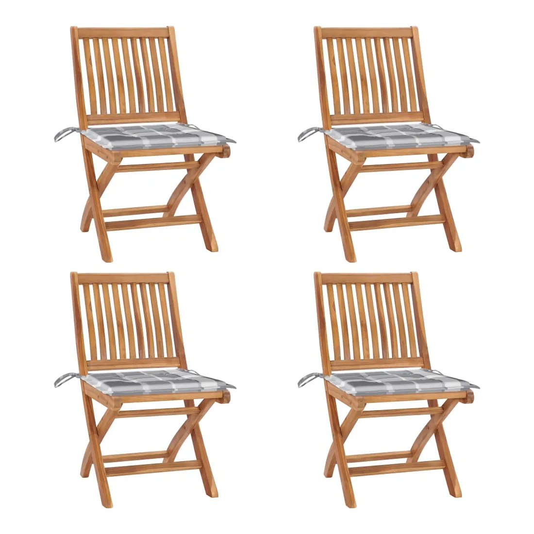 Chaises pliables de jardin avec coussins lot de 4 Teck solide