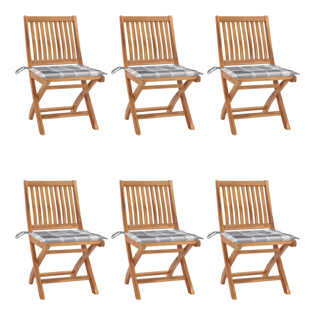 Cet ensemble de chaises de jardin en bois présente un design intemporel. Les chaises d’extérieur conviennent à tous les environnements, tels que les maisons, les bureaux, les bars et les cafés, grâce à leur design simple mais élégant. Fabriqué en bois dur de teck extrêmement durable, cet ensemble de meubles en teck a été chevronné, séché au four puis finement poncé pour lui donner un aspect très lisse. Le bois de teck est connu pour sa résistance exceptionnelle aux intempéries, ce qui le rend bien plus adapté aux meubles de jardin que tout autre type de bois. Le bois de teck est le choix idéal si vous souhaitez acheter un meuble de jardin durable. Grâce à la surface sablée, les chaises de salle à manger sont résistantes aux intempéries et faciles à nettoyer. Elles peuvent également être pliées pour économiser de l’espace de stockage lorsqu'elles ne sont pas utilisées. De plus, les coussins fournis offrent un confort supplémentaire. Chaque coussin dispose de 2 ensembles de cordes pour le fixer solidement sur la chaise. Remarque : afin de prolonger la durée de vie de vos meubles d'extérieur, nous vous recommandons de les nettoyer régulièrement et de ne pas les laisser à l'extérieur sans protection inutilement.Nettoyage : utiliser une solution savonneuse douceStockage : si possible, stockez dans un endroit frais et sec à l'intérieur. Si le produit est stocké à l'extérieur, protégez-le avec une housse imperméable. Essuyez et séchez l'excès d'eau ou de neige des surfaces planes après la pluie ou une chute de neige. Permettez une circulation d'air suffisante afin d'éviter les dommages liés à l'humidité.