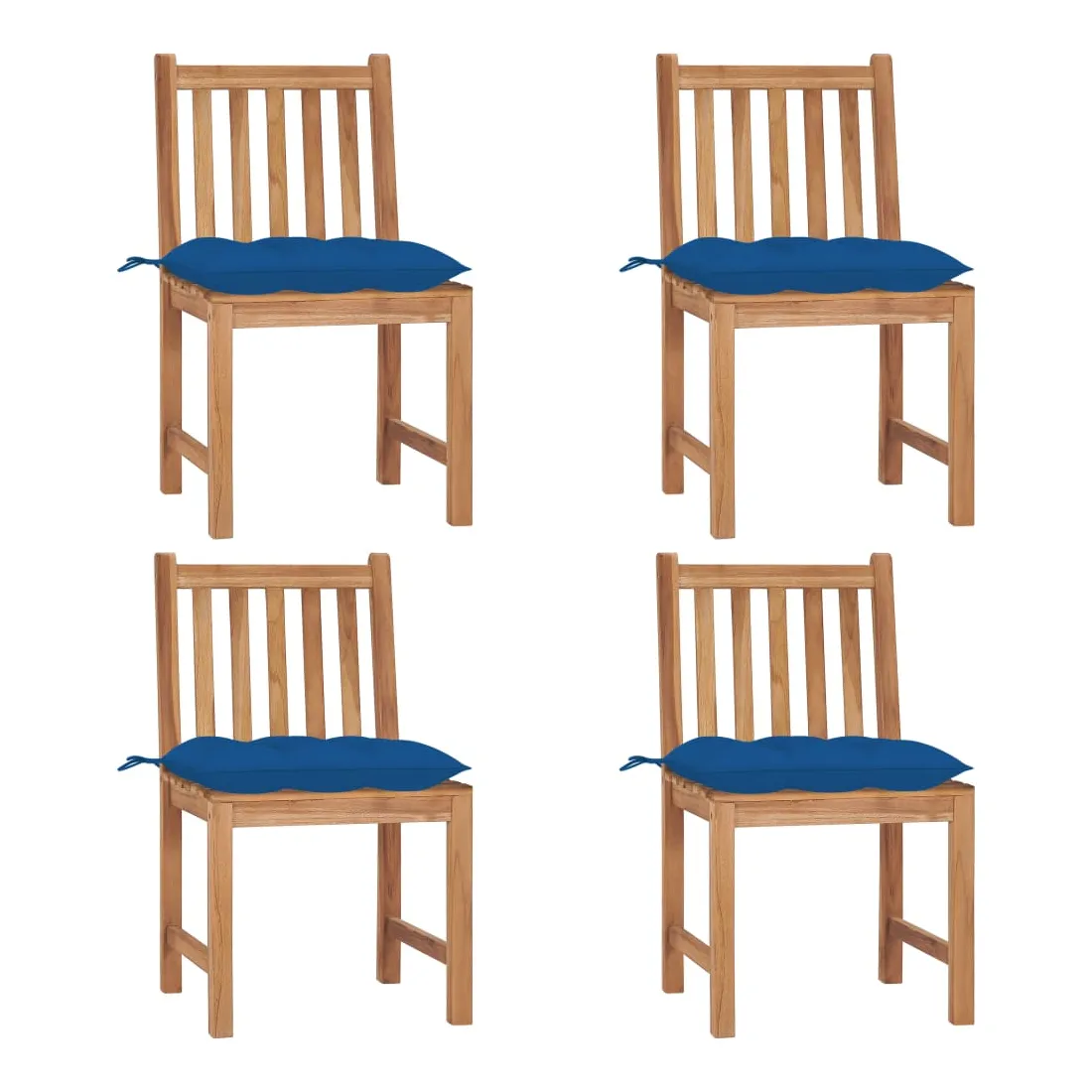 Chaises de jardin lot de 4 avec coussins Bois de teck massif