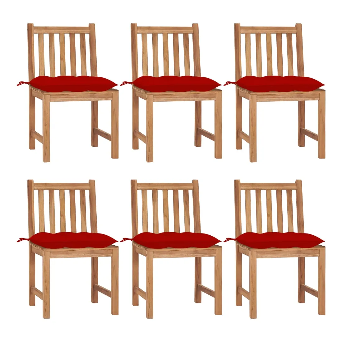 Chaises de jardin lot de 6 avec coussins Bois de teck massif