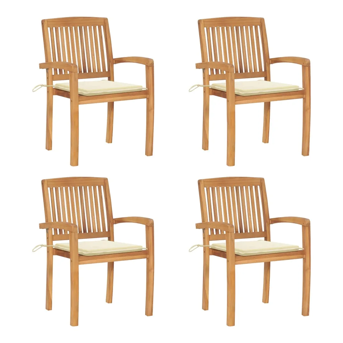Chaises de jardin empilables avec coussins lot de 4 Teck solide