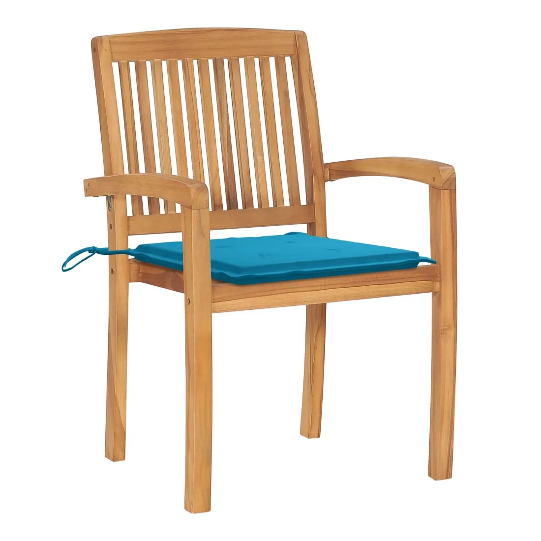 Ajoutez une touche de charme rustique à votre salle à manger, jardin ou terrasse avec cet ensemble de chaises de jardin empilables avec ensemble de coussins ! La chaise de salle à manger élève votre espace de vie intérieur ou extérieur à un niveau supérieur avec un design à lattes et élégant. Cet ensemble de meubles en teck est fabriqué à partir de bois dur de teck extrêmement durable et est chevronné, séché au four et poncé finement pour lui donner un aspect très lisse. Le bois de teck est connu pour sa solidité et sa résistance aux intempéries exceptionnelles, ce qui le rend bien plus adapté aux meubles de jardin que tout autre type de bois. Le bois de teck est le choix parfait si vous souhaitez acheter un meuble de jardin durable. Il est facile à entretenir et à nettoyer avec un chiffon humide. De plus, la chaise de salle à manger peut être empilée pour économiser de l'espace de stockage lorsqu'elle n'est pas utilisée. De plus, les coussins inclus offrent un confort supplémentaire. Chaque coussin a 2 jeux de cordes pour le fixer fermement sur la chaise. Remarque : afin de prolonger la durée de vie de vos meubles d'extérieur, nous vous recommandons de les nettoyer régulièrement et de ne pas les laisser à l'extérieur sans protection inutilement.Nettoyage : utiliser une solution savonneuse douceStockage : si possible, stockez dans un endroit frais et sec à l'intérieur. Si le produit est stocké à l'extérieur, protégez-le avec une housse imperméable. Essuyez et séchez l'excès d'eau ou de neige des surfaces planes après la pluie ou une chute de neige. Permettez une circulation d'air suffisante afin d'éviter les dommages liés à l'humidité.