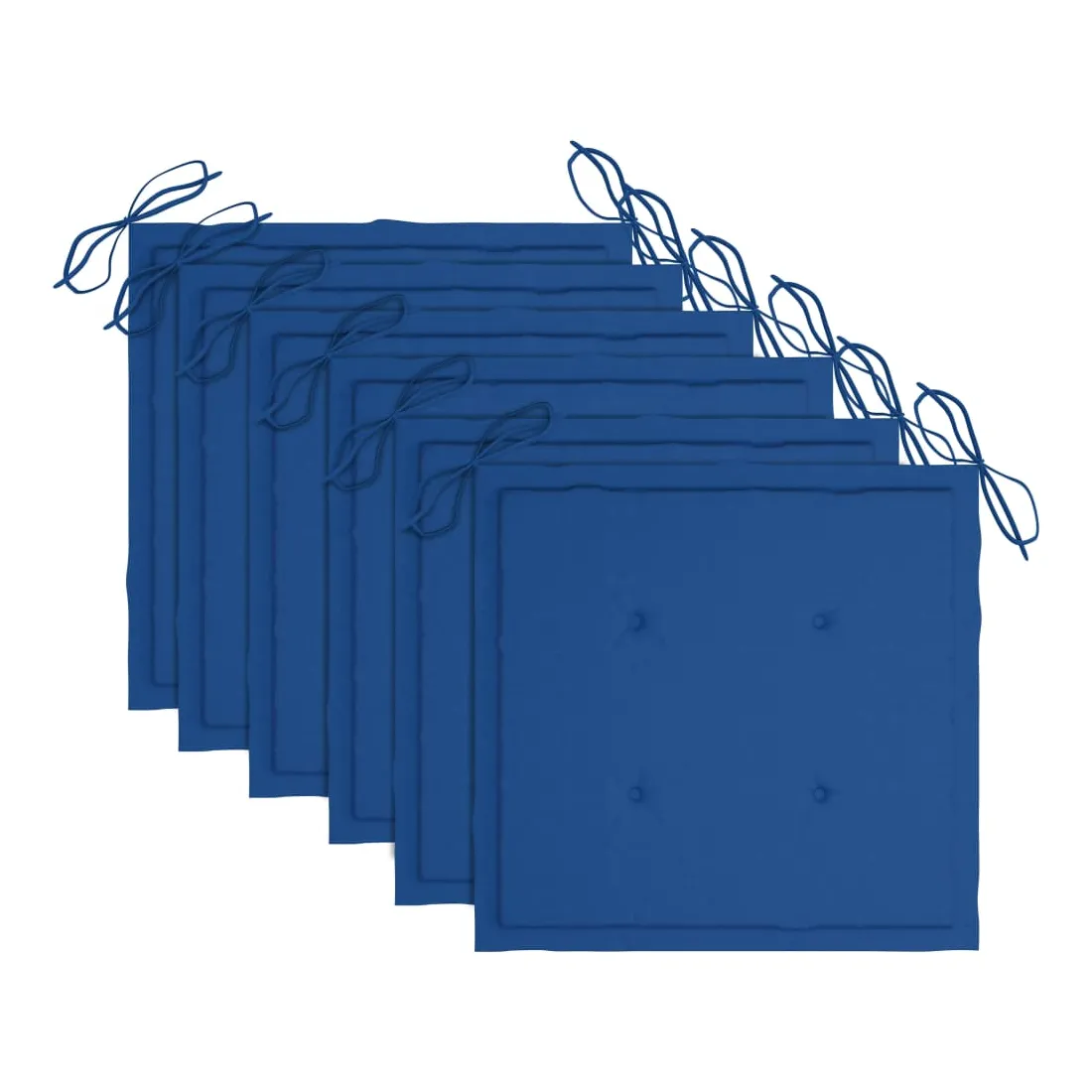 Ajoutez une touche de charme rustique à votre salle à manger, jardin ou terrasse avec cet ensemble de chaises de jardin empilables avec ensemble de coussins ! La chaise de salle à manger élève votre espace de vie intérieur ou extérieur à un niveau supérieur avec un design à lattes et élégant. Cet ensemble de meubles en teck est fabriqué à partir de bois dur de teck extrêmement durable et est chevronné, séché au four et poncé finement pour lui donner un aspect très lisse. Le bois de teck est connu pour sa solidité et sa résistance aux intempéries exceptionnelles, ce qui le rend bien plus adapté aux meubles de jardin que tout autre type de bois. Le bois de teck est le choix parfait si vous souhaitez acheter un meuble de jardin durable. Il est facile à entretenir et à nettoyer avec un chiffon humide. De plus, la chaise de salle à manger peut être empilée pour économiser de l'espace de stockage lorsqu'elle n'est pas utilisée. De plus, les coussins inclus offrent un confort supplémentaire. Chaque coussin a 2 jeux de cordes pour le fixer fermement sur la chaise. Remarque : afin de prolonger la durée de vie de vos meubles d'extérieur, nous vous recommandons de les nettoyer régulièrement et de ne pas les laisser à l'extérieur sans protection inutilement.Nettoyage : utiliser une solution savonneuse douceStockage : si possible, stockez dans un endroit frais et sec à l'intérieur. Si le produit est stocké à l'extérieur, protégez-le avec une housse imperméable. Essuyez et séchez l'excès d'eau ou de neige des surfaces planes après la pluie ou une chute de neige. Permettez une circulation d'air suffisante afin d'éviter les dommages liés à l'humidité.