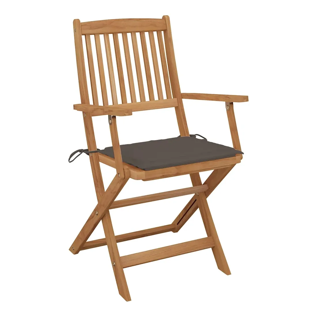 Ces chaises pliables en bois d’acacia massif avec coussins sont un endroit idéal pour vous détendre et profiter du soleil dans le jardin ou sur le patio. Ces chaises de jardin sont fabriquées en bois d’acacia massif, ce qui les rend solides et stables. Le bois d’acacia massif a la force de soutenir le poids et résiste à l’usure du temps. Ainsi, ces chaises d’extérieur offrent des années de détente. De plus, les chaises peuvent être pliées pour économiser de l’espace lorsqu'elles ne sont pas utilisées. Les coussins inclus ajoutent un confort supplémentaire. Chaque coussin comporte deux ensembles de cordes pour le fixer solidement sur la chaise. Remarque : Afin de prolonger la durée de vie de vos meubles d'extérieur, nous vous recommandons de les nettoyer régulièrement et de ne pas les laisser à l'extérieur sans protection inutilement.Nettoyage : Utiliser une solution savonneuse douceStockage : Si possible, stockez dans un endroit frais et sec à l'intérieur. Si le produit est stocké à l'extérieur, protégez-le avec une housse imperméable. Essuyez et séchez l'excès d'eau ou de neige des surfaces planes après la pluie ou une chute de neige. Permettez une circulation d'air suffisante afin d'éviter les dommages liés à l'humidité.