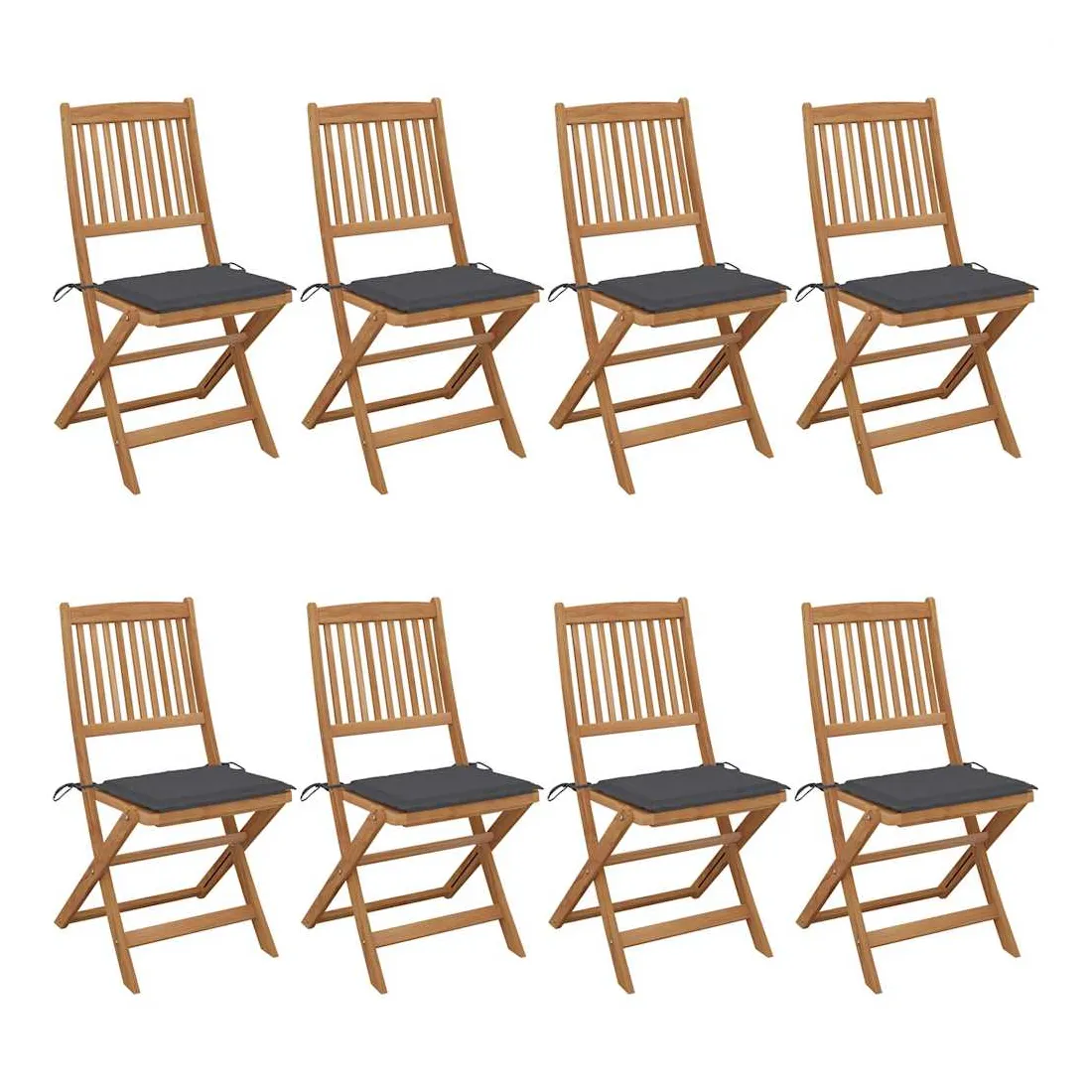 Chaises pliables de jardin lot de 8 avec coussins Bois d'acacia