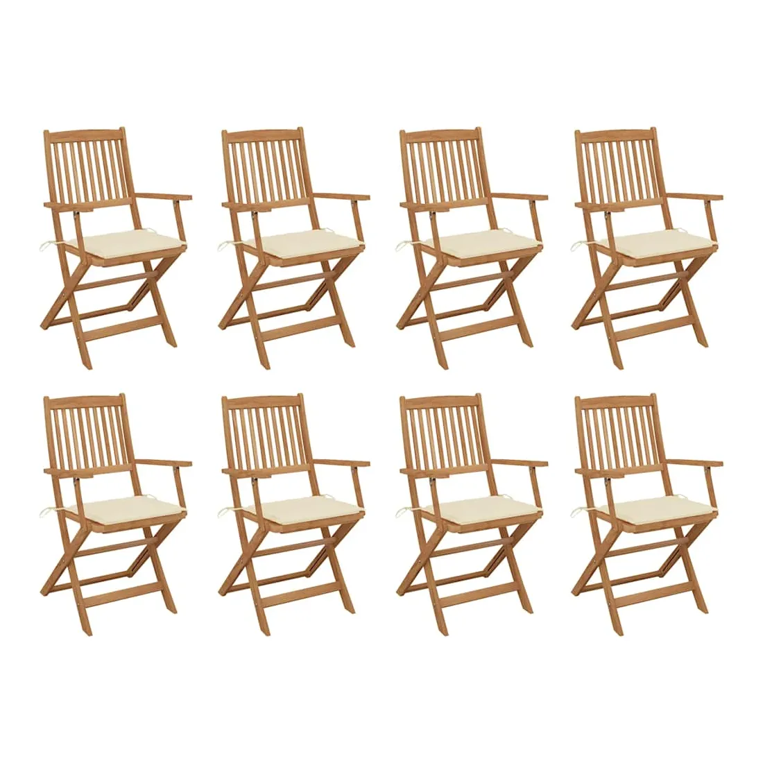 Chaises pliables d'extérieur et coussins lot de 8 Bois d'acacia
