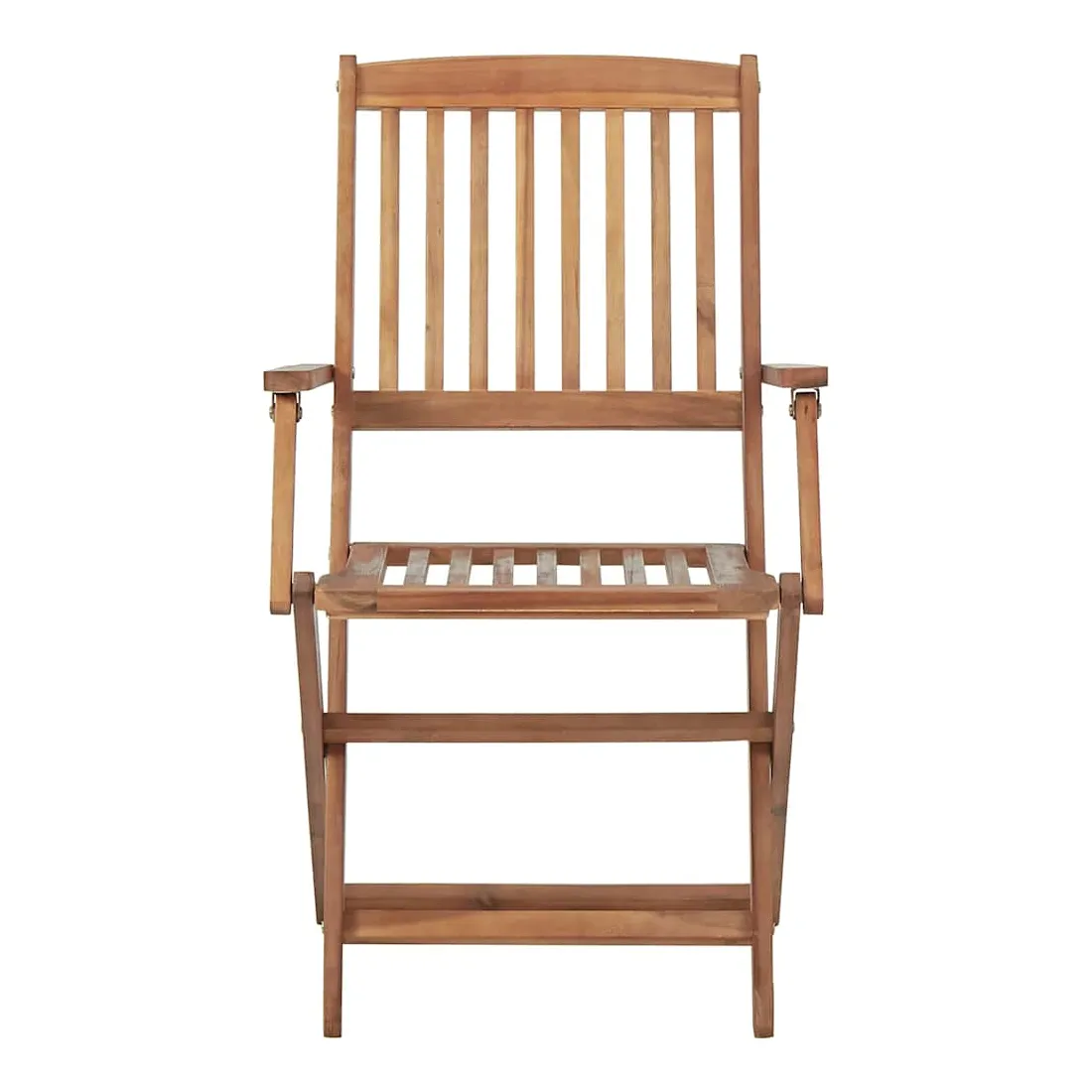 Cet ensemble de chaises de salle à manger contemporain en bois ajoutera une touche de style naturel à votre jardin, terrasse ou patio. Cet ensemble de chaises pliables sera un excellent choix pour les repas. Ces chaises de salle à manger sont construites en bois d'acacia de qualité supérieure, un bois tropical, qui est résistant aux intempéries et durable pour des années d'utilisation. La surface à finition à l'huile est également facile à nettoyer avec un chiffon humide. Les chaises peuvent être pliées pour économiser de l'espace lorsqu'elles ne sont pas utilisées. De plus, les coussins fournis offrent un confort supplémentaire. Chaque coussin dispose de 2 ensembles de cordes pour le fixer fermement sur la chaise. Remarque : afin de prolonger la durée de vie de vos meubles d'extérieur, nous vous recommandons de les nettoyer régulièrement et de ne pas les laisser à l'extérieur sans protection inutilement.Nettoyage : utiliser une solution savonneuse douceStockage : si possible, stockez dans un endroit frais et sec à l'intérieur. Si le produit est stocké à l'extérieur, protégez-le avec une housse imperméable. Essuyez et séchez l'excès d'eau ou de neige des surfaces planes après la pluie ou une chute de neige. Permettez une circulation d'air suffisante afin d'éviter les dommages liés à l'humidité.