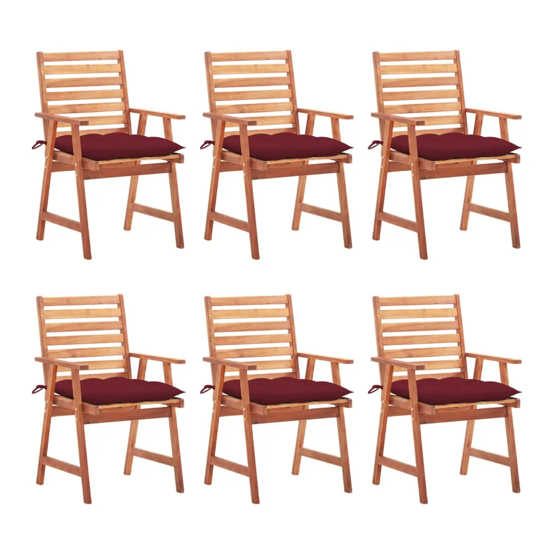 Chaises à manger d'extérieur lot de 6 et coussins Acacia massif