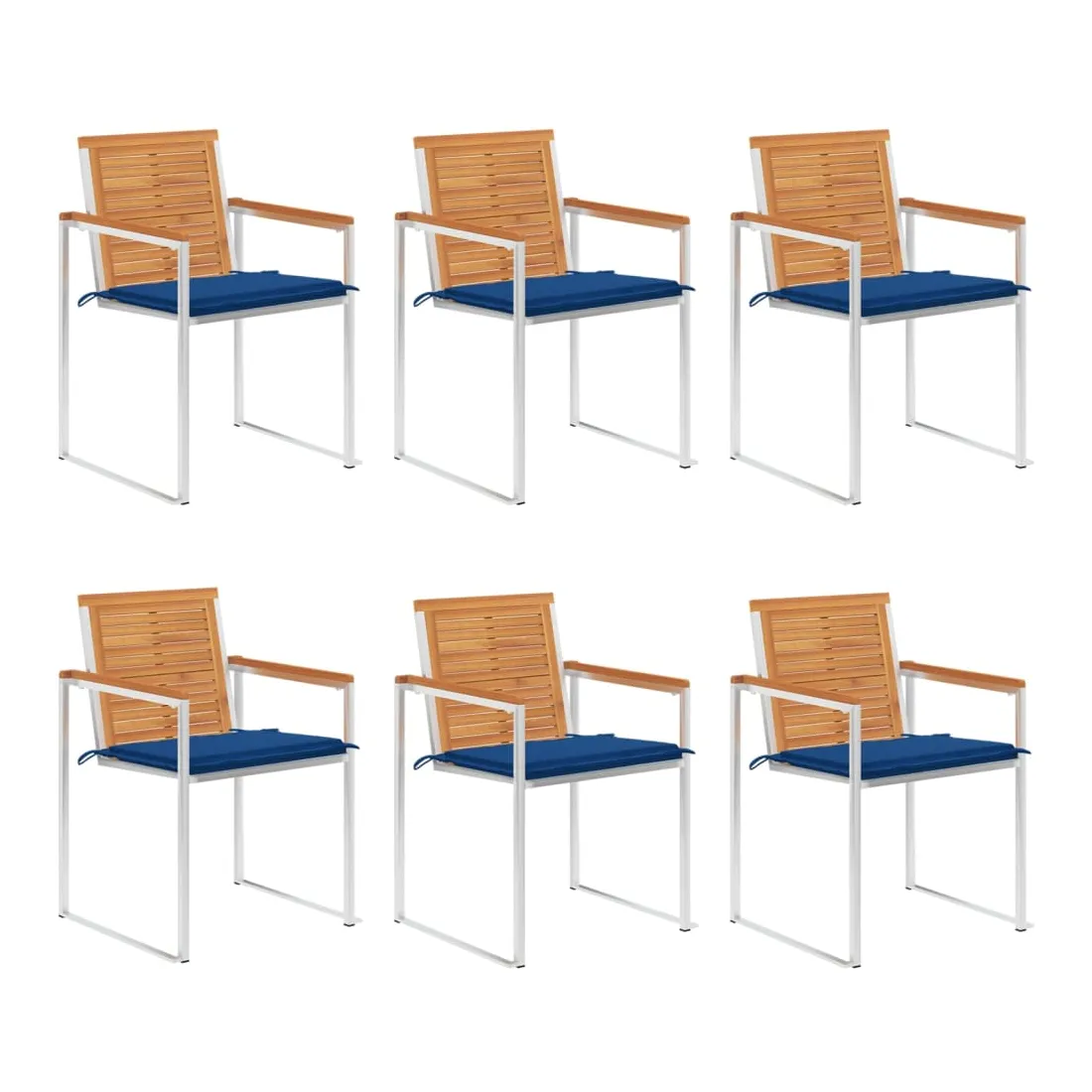 Ces chaises de jardin en bois sont conçues pour devenir le point de mire de votre jardin ou de votre patio. Les chaises de salle à manger sont fabriquées en bois d'acacia massif et en acier inoxydable de haute qualité, ce qui les rend très durables, résistantes à la rouille, robustes et faciles à nettoyer avec un chiffon humide. Le coussin inclus est plus qu'un supplément pratique, il a également une fonction décorative. Asseyez-vous pour un délicieux dîner en plein air ou détendez-vous et profitez du beau temps avec cet ensemble classique de chaises de jardin. Remarque : afin de prolonger la durée de vie de vos meubles d'extérieur, nous vous recommandons de les nettoyer régulièrement et de ne pas les laisser à l'extérieur sans protection inutilement.Nettoyage : Utiliser une solution savonneuse douce.Stockage : si possible, stockez dans un endroit frais et sec à l'intérieur. Si le produit est stocké à l'extérieur, protégez-le avec une housse imperméable. Essuyez et séchez l'excès d'eau ou de neige des surfaces planes après la pluie ou une chute de neige. Permettez une circulation d'air suffisante afin d'éviter les dommages liés à l'humidité.