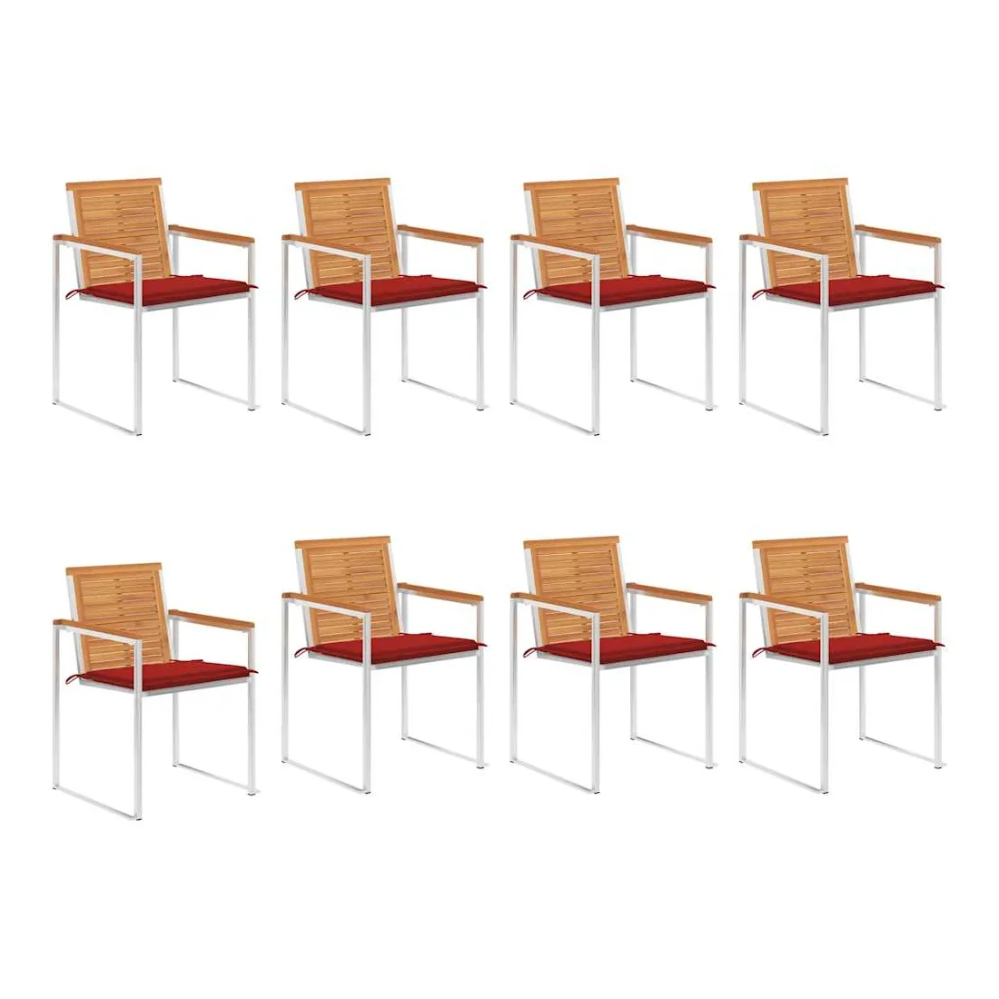 Chaises de jardin lot de 8 avec coussins Bois d'acacia solide