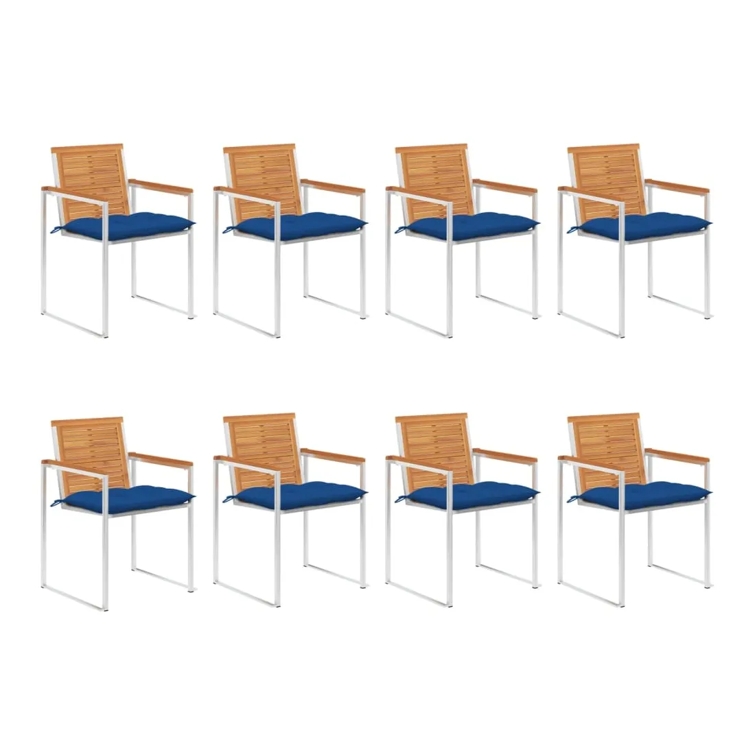 Chaises de jardin lot de 8 avec coussins bois d'acacia massif