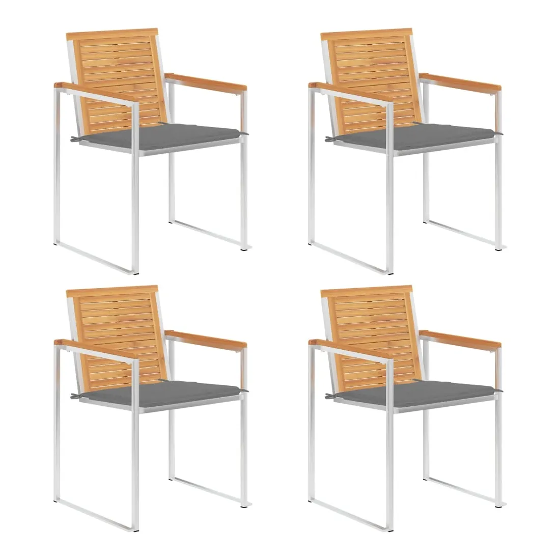 Ces chaises de jardin en bois sont conçues pour devenir le point de mire de votre jardin ou de votre patio. Construite à partir de bois dur de teck extrêmement durable, cette pièce de mobilier en boit de teck a été chevronnée, séchée au four puis poncée finement pour donner un aspect très lisse. Le bois de teck est connu pour sa solidité et sa résistance aux intempéries exceptionnelles, ce qui le rend bien plus adapté aux meubles de jardin que tout autre type de bois. Le bois de teck est le choix parfait si vous souhaitez acheter un meuble de jardin durable. Le cadre en acier inoxydable de haute qualité les rend également très durables, résistantes à la rouille et robustes. Le coussin inclus est plus qu'un supplément pratique ; il a une fonction décorative aussi. Asseyez-vous pour un délicieux dîner en plein air ou détendez-vous simplement et profitez du beau temps sur cet ensemble de chaises de jardin classique. Remarque : afin de prolonger la durée de vie de vos meubles d'extérieur, nous vous recommandons de les nettoyer régulièrement et de ne pas les laisser à l'extérieur sans protection inutilement.Nettoyage : Utiliser une solution savonneuse douce.Stockage : si possible, stockez dans un endroit frais et sec à l'intérieur. Si le produit est stocké à l'extérieur, protégez-le avec une housse imperméable. Essuyez et séchez l'excès d'eau ou de neige des surfaces planes après la pluie ou une chute de neige. Permettez une circulation d'air suffisante afin d'éviter les dommages liés à l'humidité.