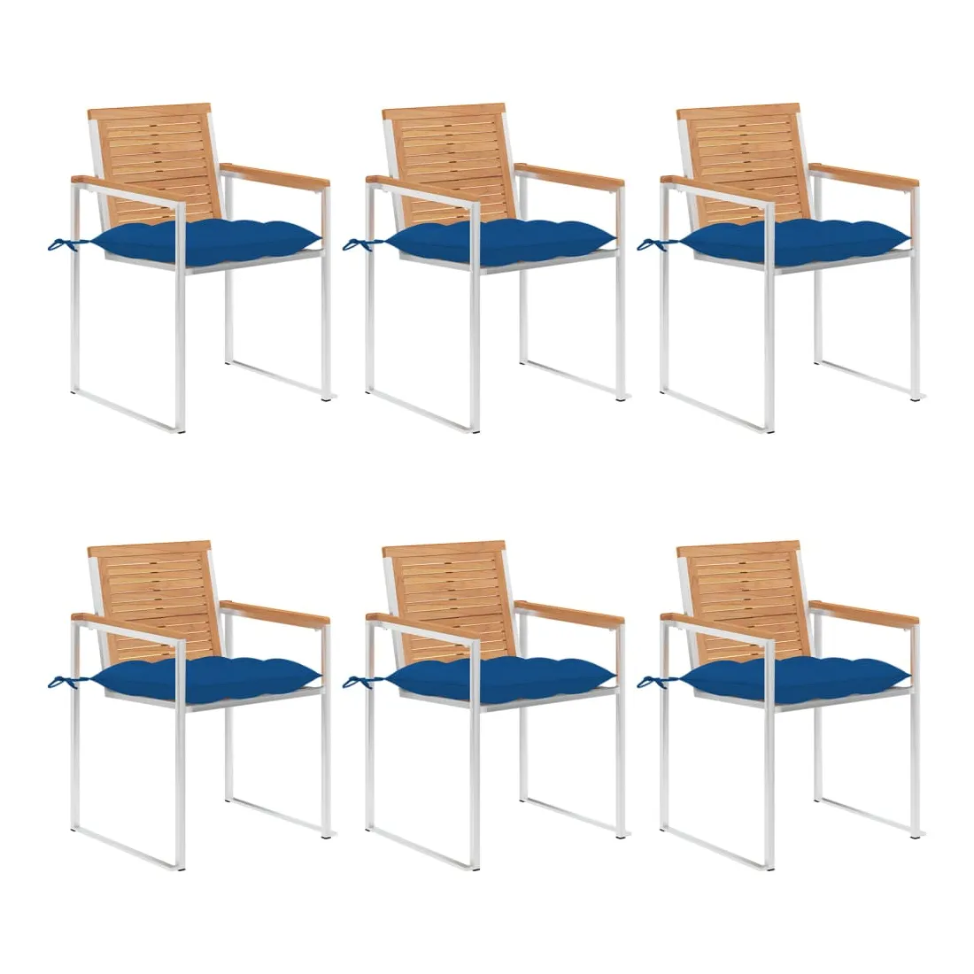 Ces chaises de jardin en bois sont conçues pour devenir le point de mire de votre jardin ou de votre patio. Construite à partir de bois dur de teck extrêmement durable, cette pièce de mobilier en boit de teck a été chevronnée, séchée au four puis poncée finement pour donner un aspect très lisse. Le bois de teck est connu pour sa solidité et sa résistance aux intempéries exceptionnelles, ce qui le rend bien plus adapté aux meubles de jardin que tout autre type de bois. Le bois de teck est le choix parfait si vous souhaitez acheter un meuble de jardin durable. Le cadre en acier inoxydable de haute qualité les rend également très durables, résistantes à la rouille et robustes. Le coussin inclus est plus qu'un supplément pratique ; il a une fonction décorative aussi. Asseyez-vous pour un délicieux dîner en plein air ou détendez-vous simplement et profitez du beau temps sur cet ensemble de chaises de jardin classique. Remarque : afin de prolonger la durée de vie de vos meubles d'extérieur, nous vous recommandons de les nettoyer régulièrement et de ne pas les laisser à l'extérieur sans protection inutilement.Nettoyage : Utiliser une solution savonneuse douce.Stockage : si possible, stockez dans un endroit frais et sec à l'intérieur. Si le produit est stocké à l'extérieur, protégez-le avec une housse imperméable. Essuyez et séchez l'excès d'eau ou de neige des surfaces planes après la pluie ou une chute de neige. Permettez une circulation d'air suffisante afin d'éviter les dommages liés à l'humidité.