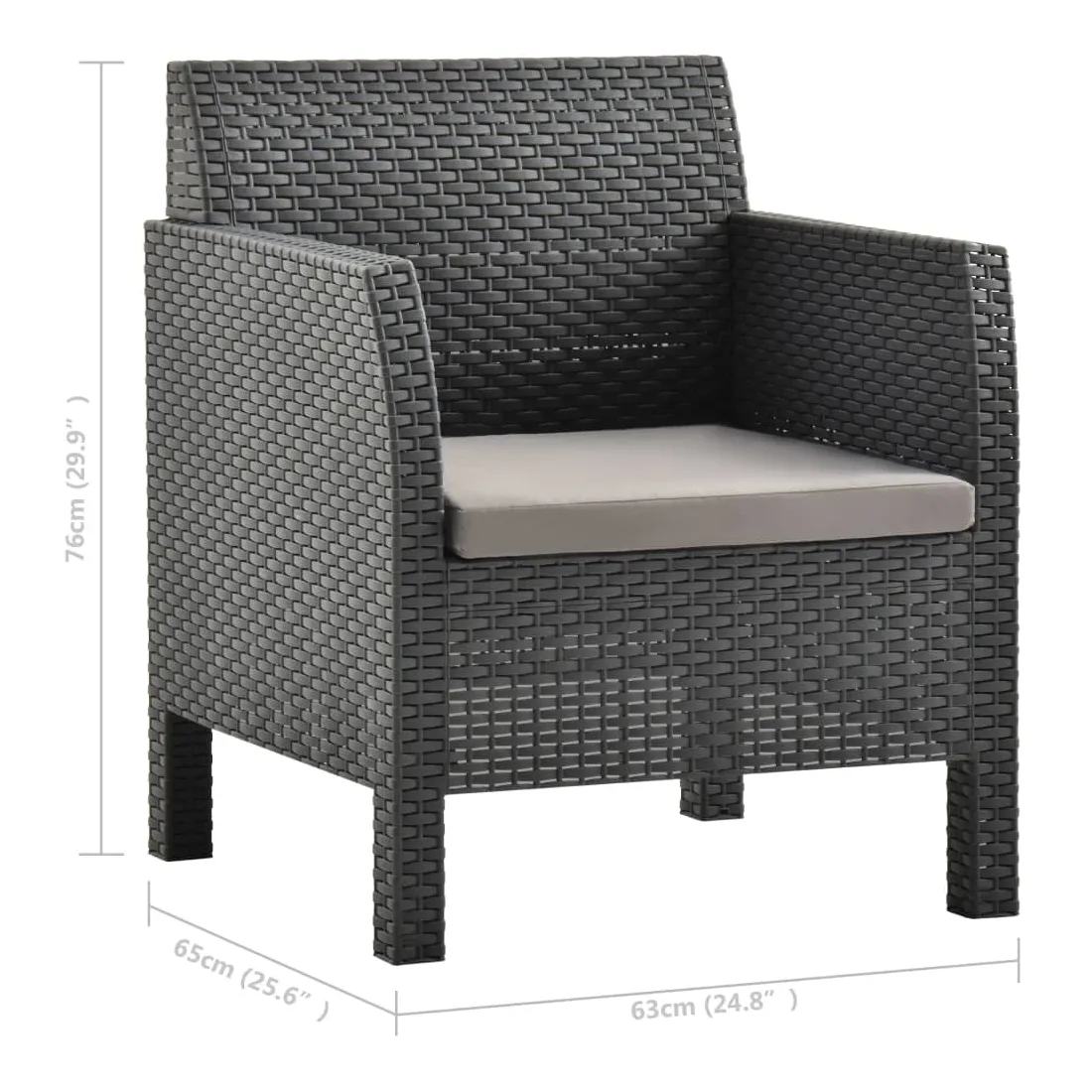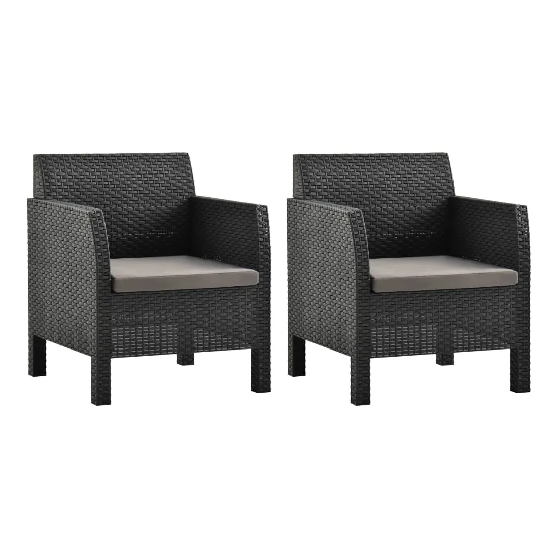 Chaises de jardin avec coussins lot de 2 PP Rotin Anthracite