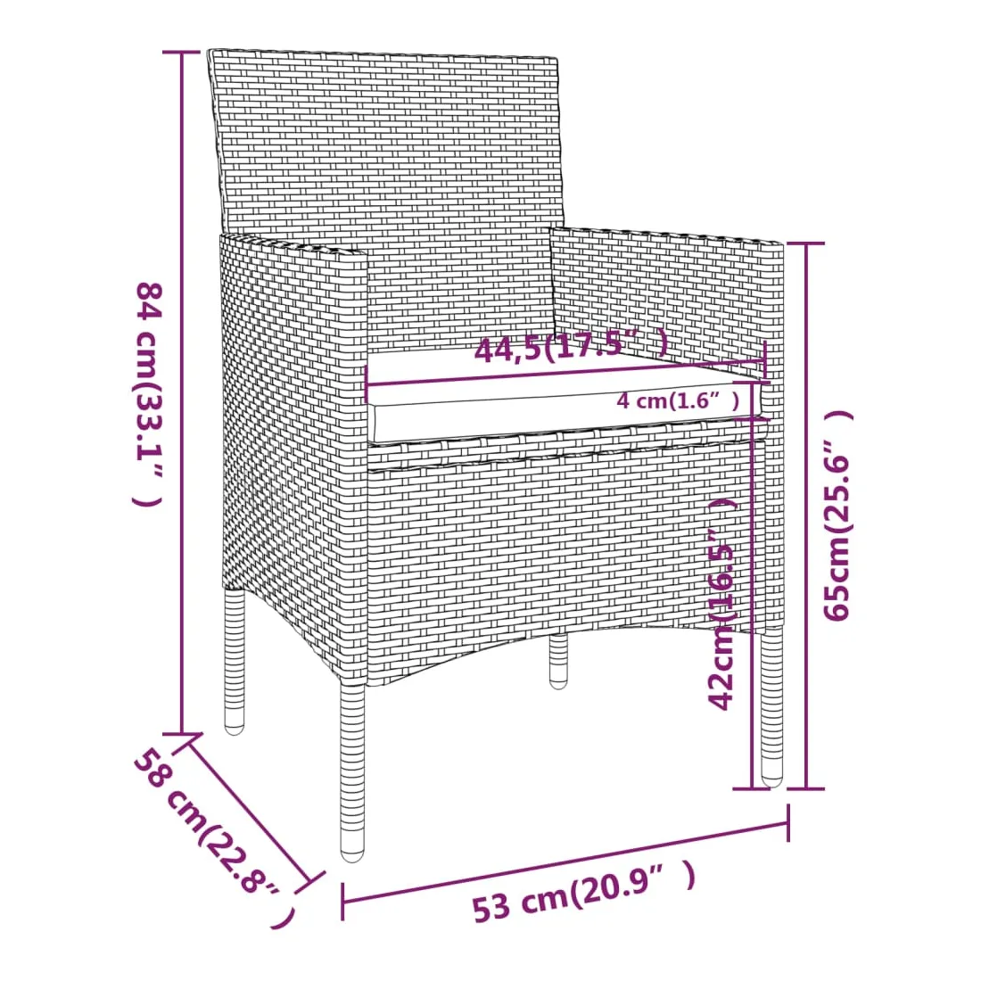 - Dimensions de la chaise : 53 x 58 x 84 cm (I x P x H)