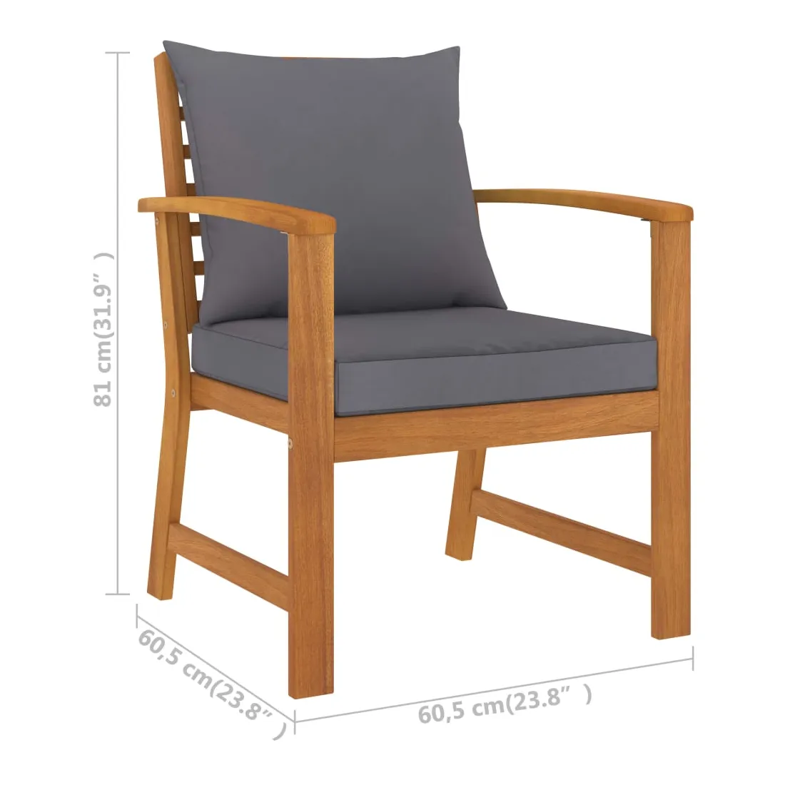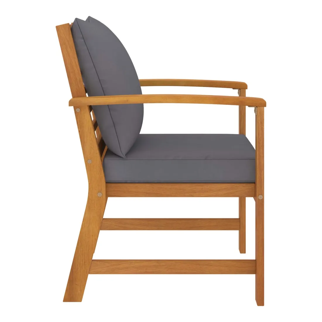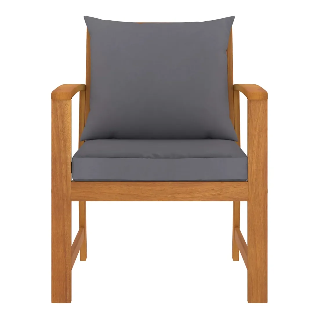 Ces chaises de jardin rustiques en bois deviendront le point central de votre jardin ou de votre terrasse. Matériau durable : cet ensemble de chaises est fabriqué en bois d'acacia massif de haute qualité, un bois dur tropical, qui est résistant aux intempéries et très durable. Expérience d'assise confortable : ce mobilier d'extérieur, doté de coussins épais, offre une expérience d'assise confortable. Conception modulaire : cette pièce peut être combinée avec d'autres produits dans notre boutique afin que le client puisse créer son propre ensemble.