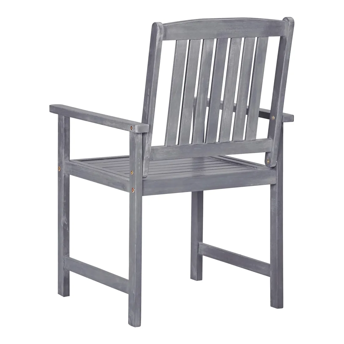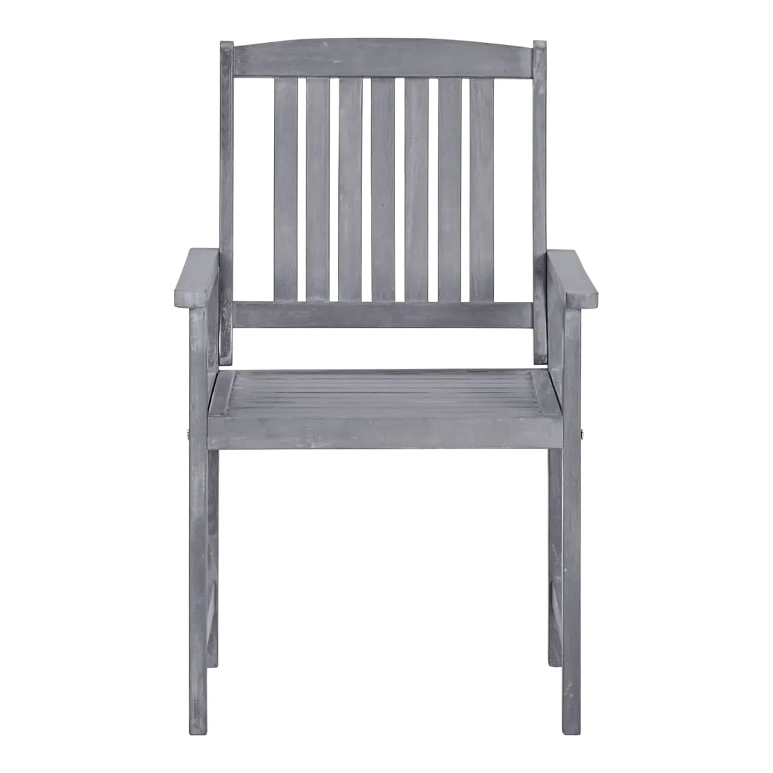 Ajoutez du confort supplémentaire dans votre espace extérieur avec cet ensemble de chaises de jardin en bois tendance. Il est parfait pour bavarder en famille et entre amis ou tout simplement profiter des bains de soleil apaisants ! Cet ensemble de chaises de jardin est fait de bois d'acacia massif avec une finition gris délavé, qui est du bois dur avec des grains denses. Le bois d'acacia massif a également la force de soutenir le poids et de résister à l'usure du temps. Cet ensemble de chaises en bois est stable, durable et résistant aux intempéries. Les pieds en bois assurent également une excellente stabilité. De plus, la surface de la chaise est facile à nettoyer avec un chiffon humide.