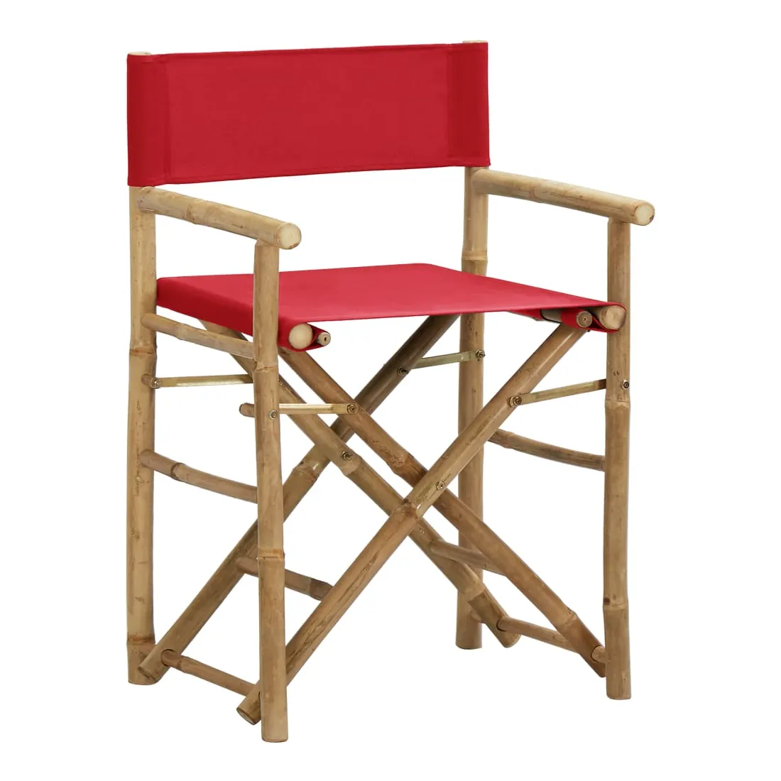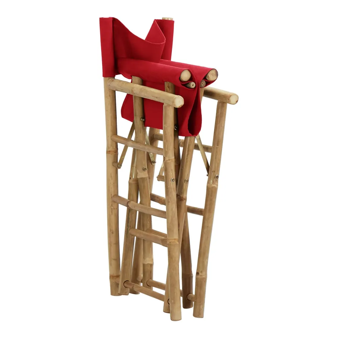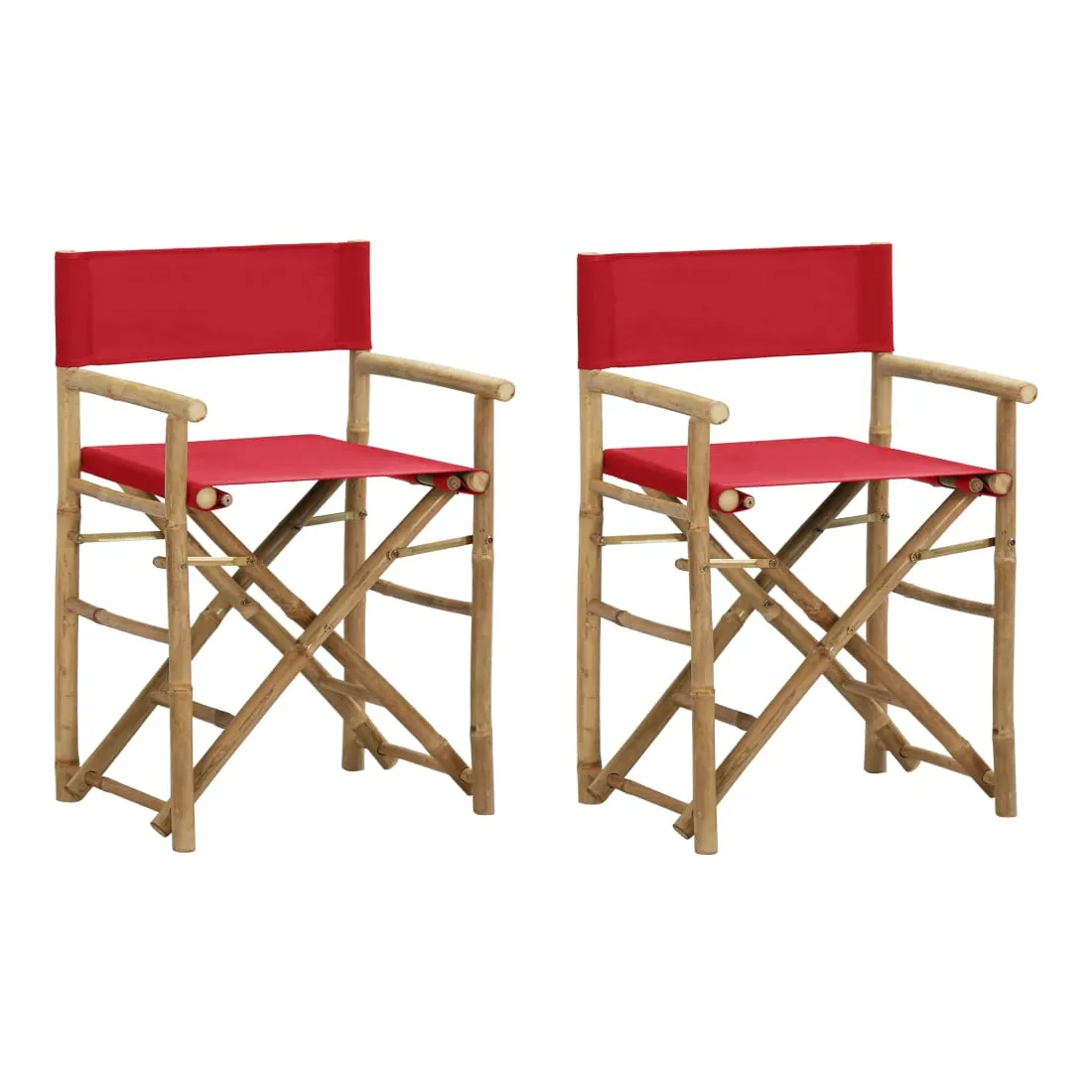 Chaises pliables de directeur lot de 2 Rouge Bambou et tissu