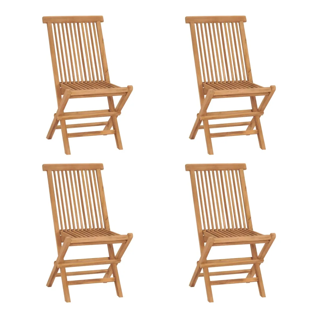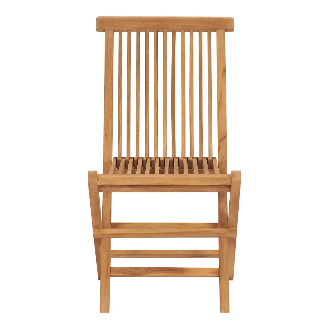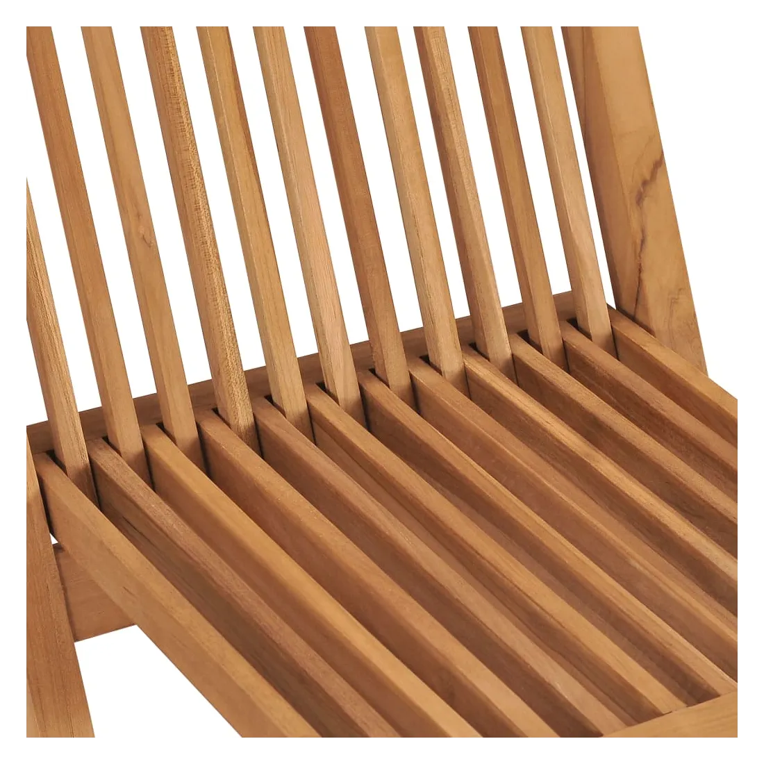 Cet ensemble de chaises de jardin, au design simple mais élégant, vous offre une expérience d'assise confortable. Construite à partir de bois dur de teck extrêmement durable, cette pièce de meuble en teck a été chevronnée, séchée au four puis poncée finement lui pour donner un aspect très lisse. Le bois de teck est connu pour sa solidité et sa résistance aux intempéries exceptionnelles, ce qui le rend bien plus adapté aux meubles de jardin que tout autre type de bois. Le bois de teck est le choix parfait si vous souhaitez acheter un meuble de jardin durable. De plus, les chaises en bois peuvent être facilement repliées lorsqu'elles ne sont pas utilisées. Remarque : afin de prolonger la durée de vie de vos meubles d'extérieur, nous vous recommandons de les nettoyer régulièrement et de ne pas les laisser à l'extérieur sans protection inutilement.Nettoyage : utiliser une solution savonneuse douceStockage : si possible, stockez dans un endroit frais et sec à l'intérieur. Si le produit est stocké à l'extérieur, protégez-le avec une housse imperméable. Essuyez et séchez l'excès d'eau ou de neige des surfaces planes après la pluie ou une chute de neige. Permettez une circulation d'air suffisante afin d'éviter les dommages liés à l'humidité.