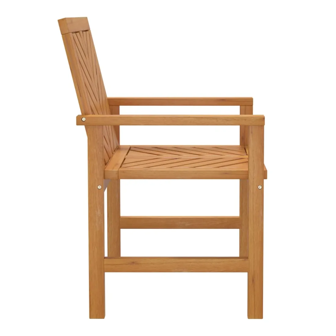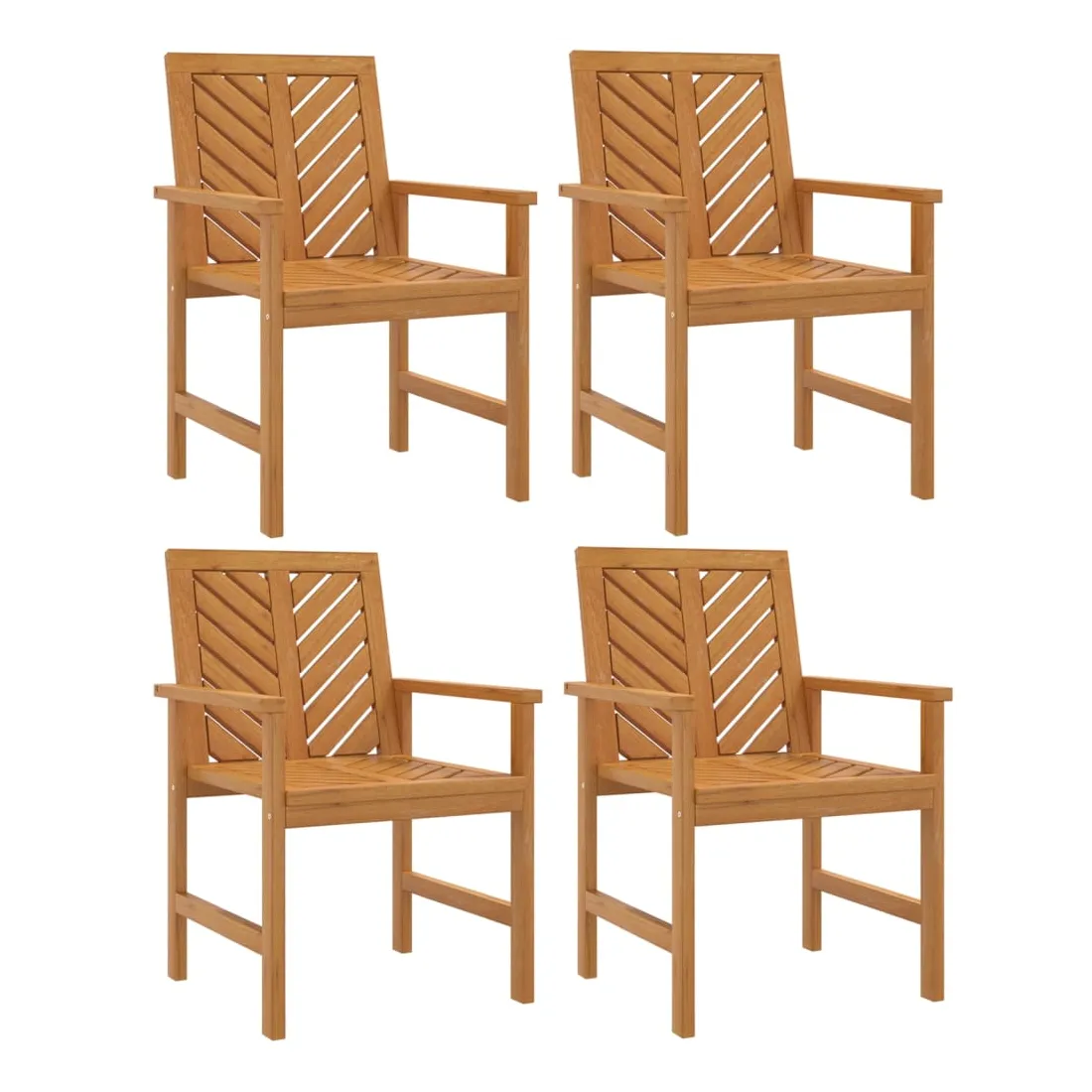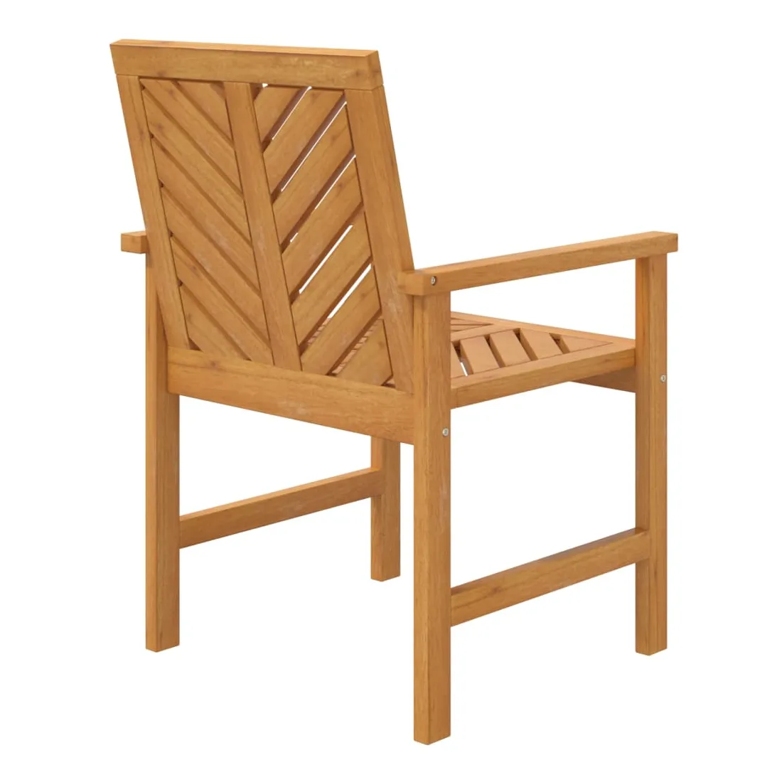 Ces chaises à dîner de jardin avec des lattes à motif à chevrons sont un supplément parfait à votre jardin et à votre terrasse, créant une impression durable ! Matériau durable : le bois d'acacia massif est un matériau naturel magnifique. Le bois d'acacia un bois dur tropical, qui est dense, robuste et durable.Cadre stable : le cadre en bois de la chaise à dîner garantit sa robustesse et sa stabilité.Assise confortable : la chaise de jardin est dotée d'accoudoirs et d'un dossier avec motif à chevrons pour vous offrir une expérience d'assise confortable.Design élégant : avec un motif distinctif de lattes diagonales, les chaises en bois attirent l'attention de tous vos visiteurs. Bon à savoir :Pour faciliter au maximum le montage, chaque produit est livré avec des instructions. Remarque :Pour que vos meubles d'extérieur restent beaux, nous vous recommandons de les protéger avec une housse imperméable.