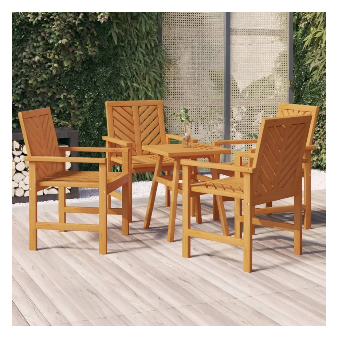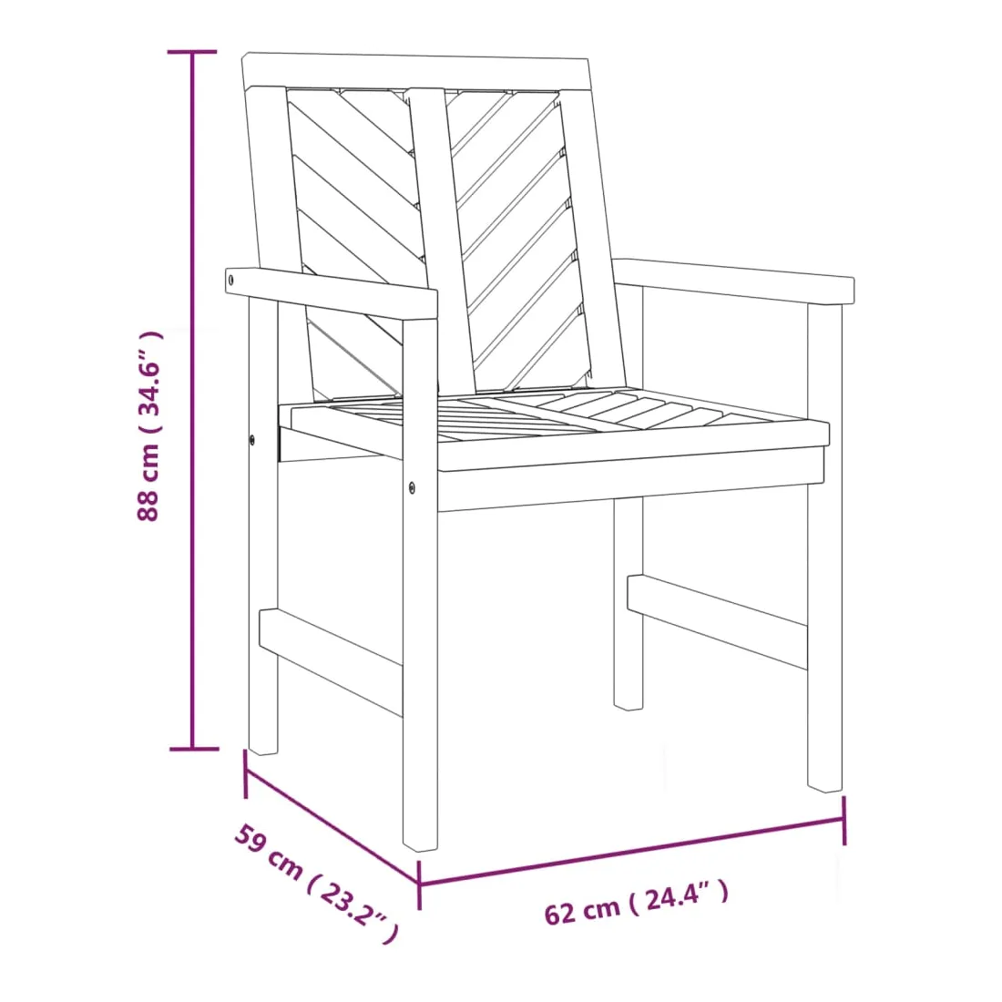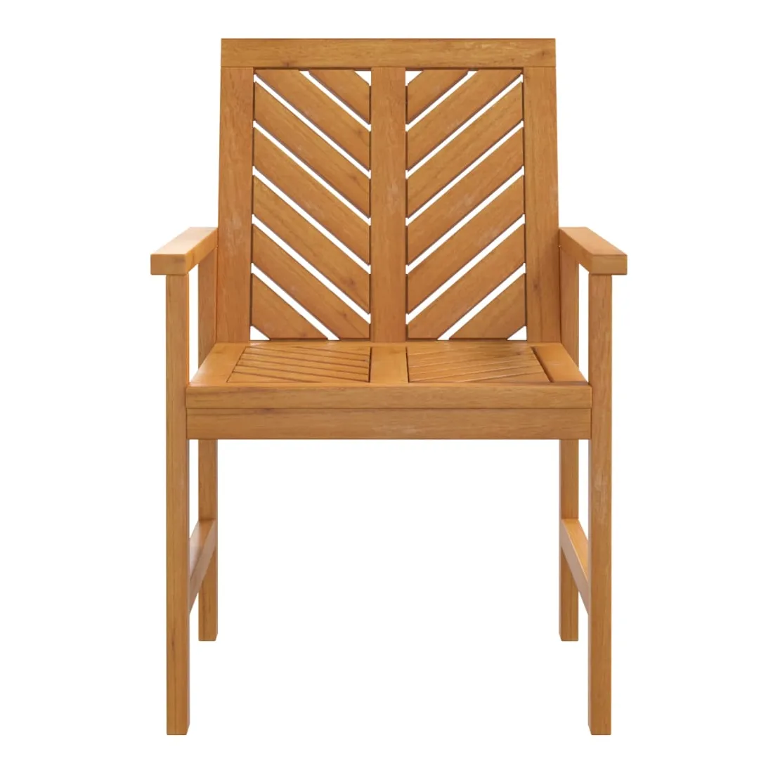 Ces chaises à dîner de jardin avec des lattes à motif à chevrons sont un supplément parfait à votre jardin et à votre terrasse, créant une impression durable ! Matériau durable : le bois d'acacia massif est un matériau naturel magnifique. Le bois d'acacia un bois dur tropical, qui est dense, robuste et durable.Cadre stable : le cadre en bois de la chaise à dîner garantit sa robustesse et sa stabilité.Assise confortable : la chaise de jardin est dotée d'accoudoirs et d'un dossier avec motif à chevrons pour vous offrir une expérience d'assise confortable.Design élégant : avec un motif distinctif de lattes diagonales, les chaises en bois attirent l'attention de tous vos visiteurs. Bon à savoir :Pour faciliter au maximum le montage, chaque produit est livré avec des instructions. Remarque :Pour que vos meubles d'extérieur restent beaux, nous vous recommandons de les protéger avec une housse imperméable.