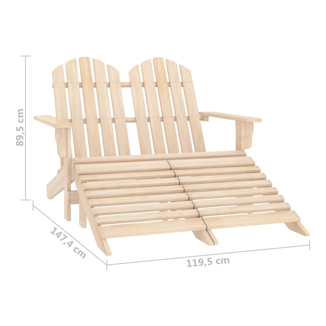 Détendez-vous dans le jardin ou sur la terrasse dans cette chaise Adirondack tendance et confortable avec repose-pieds ! Cette chaise de jardin à 2 places, fabriquée à partir de bois de sapin massif, dispose d'un cadre robuste et est stable, ce qui la rend facile à entretenir et résistante aux intempéries. La structure de conception ergonomique assure également un confort optimal. De plus, les repose-pieds sont détachables et peuvent fournir un soutien supplémentaire pour vos pieds. Avec un design élégant et intemporel, ce sera un supplément pratique et classique à votre espace de vie extérieur. Remarque : afin de prolonger la durée de vie des meubles d'extérieur, nous vous recommandons de les protéger avec une housse imperméable.