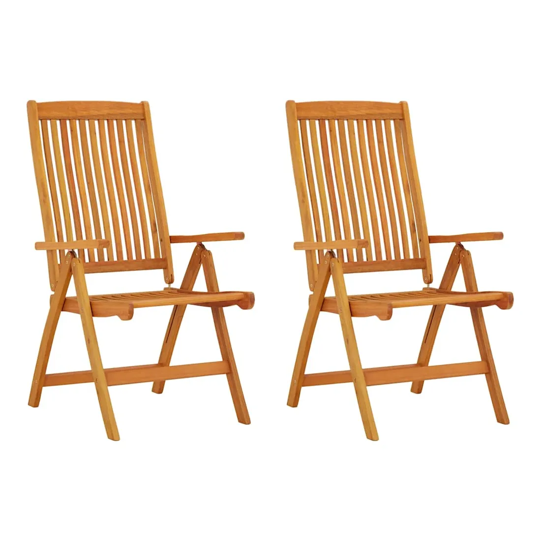 Ces chaises de jardin en bois seront un excellent supplément à votre jardin, terrasse ou patio. Bois d'eucalyptus massif : le bois d'eucalyptus massif est un magnifique matériau naturel. Le bois d'eucalyptus est extrêmement dense et hydrofuge.Positions inclinables confortables : les fauteuils de jardin sont dotés de sièges et de dossiers incurvés. De plus, le dossier peut être réglé en 5 positions, vous permettant ainsi de toujours trouver une position confortable.Design pliable : ces chaises de jardin en bois peuvent être pliées pour économiser de l'espace lorsqu'elles ne sont pas utilisées. Vous pouvez facilement les transporter partout avec vous lors de vos sorties en plein air. Remarque :Afin de prolonger la durée de vie de votre mobilier d'extérieur, nous vous recommandons de le protéger avec une housse imperméable.