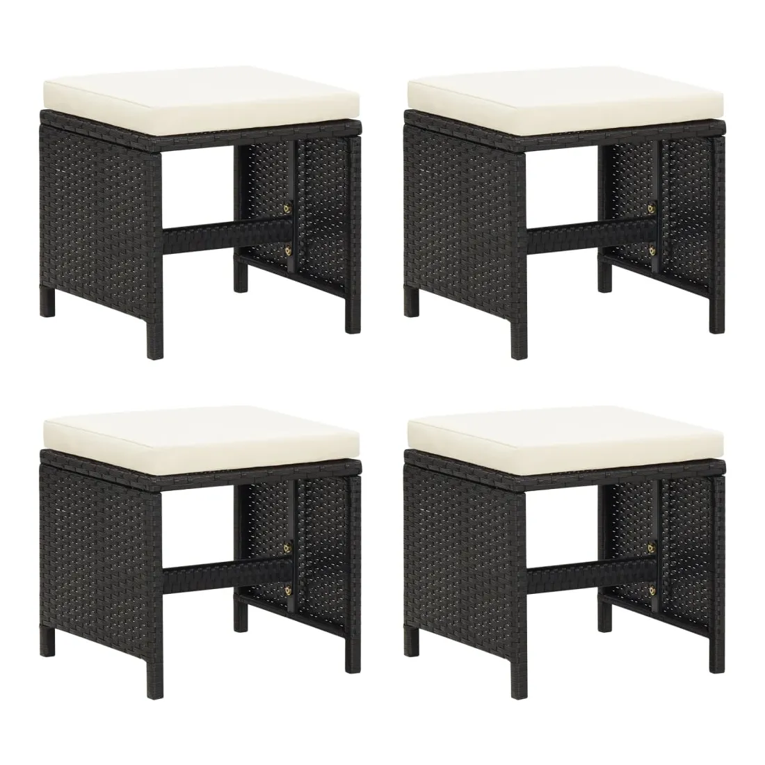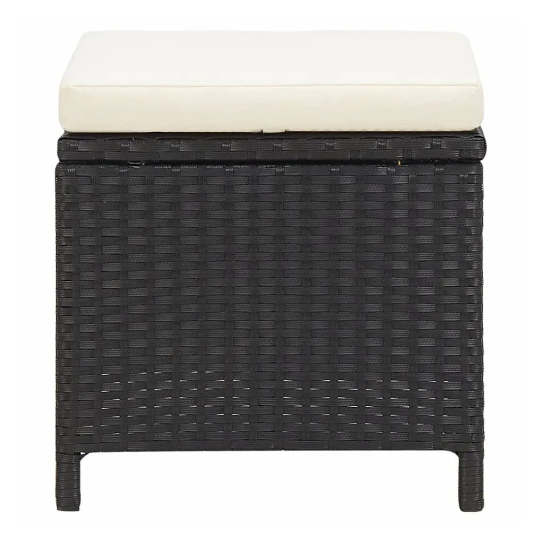 Cet ensemble de tabourets de jardin complète parfaitement votre jardin, votre terrasse et votre espace de vie extérieur. Avec un cadre en acier robuste recouvert de résine tressée résistante aux intempéries, le repose-pied est résistant à la rouille et à la moisissure, offrant des années de détente de qualité. Le coussin d'assise bien rembourré offre un confort optimal. Remarque : afin de prolonger la durée de vie de vos meubles d'extérieur, nous vous recommandons de les nettoyer régulièrement et de ne pas les laisser à l'extérieur sans protection inutilement.Nettoyage : Utiliser une solution savonneuse douce.Stockage : si possible, stockez dans un endroit frais et sec à l'intérieur. Si le produit est stocké à l'extérieur, protégez-le avec une housse imperméable. Essuyez et séchez l'excès d'eau ou de neige des surfaces planes après la pluie ou une chute de neige. Permettez une circulation d'air suffisante afin d'éviter les dommages liés à l'humidité.