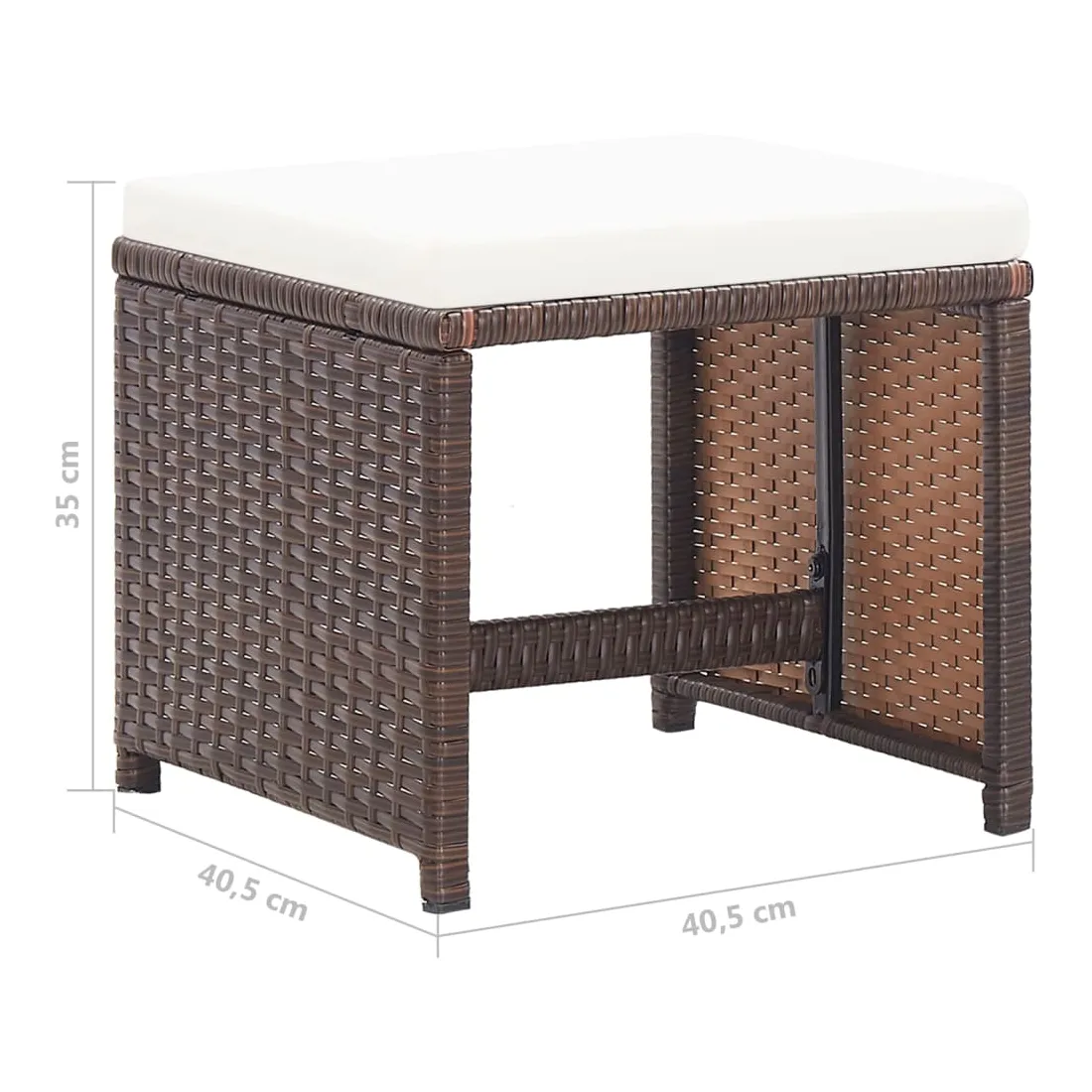 Cet ensemble de tabourets de jardin complète parfaitement votre jardin, votre terrasse et votre espace de vie extérieur. Avec un cadre en acier robuste recouvert de résine tressée résistante aux intempéries, le repose-pied d'extérieur est résistant à la rouille et à la moisissure, offrant des années de détente de qualité. Le coussin d'assise bien rembourré offre un confort optimal. Remarque : afin de prolonger la durée de vie de vos meubles d'extérieur, nous vous recommandons de les nettoyer régulièrement et de ne pas les laisser à l'extérieur sans protection inutilement.Nettoyage : Utiliser une solution savonneuse douce.Stockage : si possible, stockez dans un endroit frais et sec à l'intérieur. Si le produit est stocké à l'extérieur, protégez-le avec une housse imperméable. Essuyez et séchez l'excès d'eau ou de neige des surfaces planes après la pluie ou une chute de neige. Permettez une circulation d'air suffisante afin d'éviter les dommages liés à l'humidité.