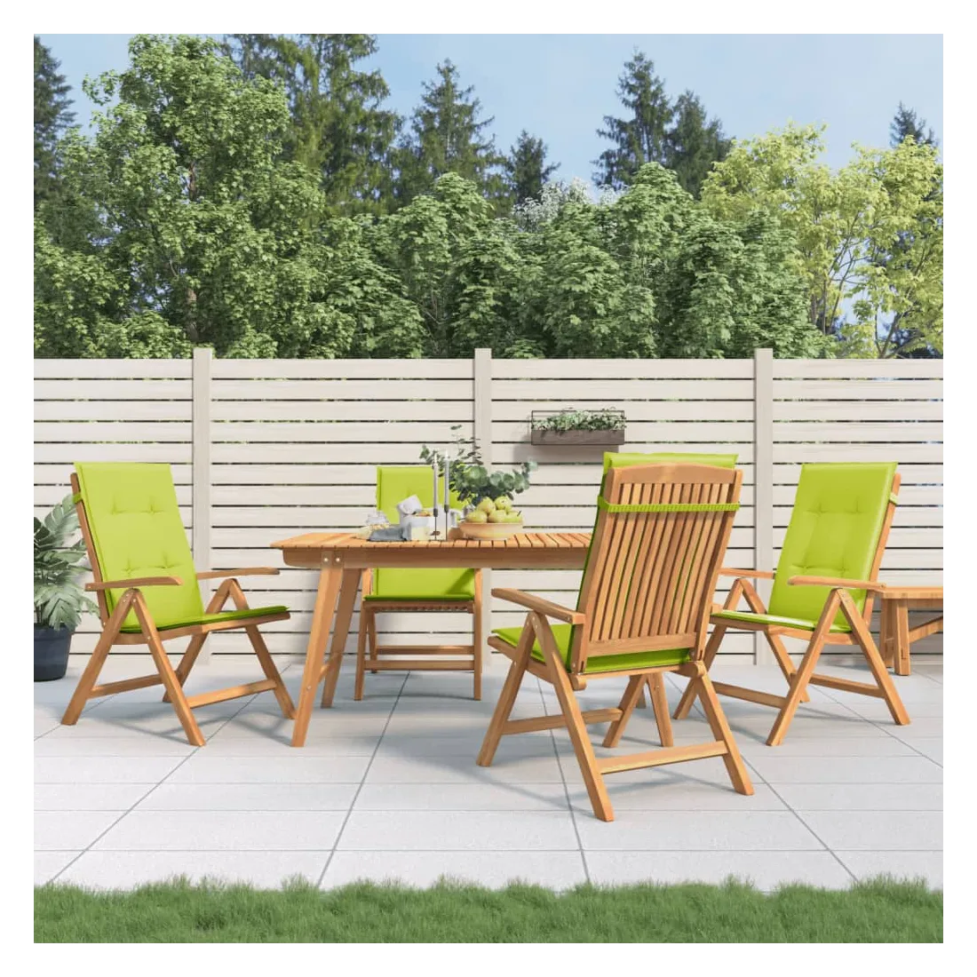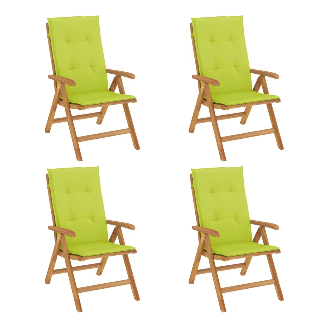 Améliorez le confort de votre espace extérieur avec ces chaises de jardin en bois classiques. Elles sont idéales pour discuter en famille et entre amis ou simplement pour profiter du bain de soleil ! Bois de teck massif : le bois de teck massif est un matériau naturel magnifique. Il a été chevronné, séché au four, puis sablé finement pour lui donner une apparence très lisse. Le bois de teck est connu pour sa résistance exceptionnelle et sa résistance aux intempéries.Dossier réglable : les dossiers des chaises de jardin sont réglables en 6 positions afin que vous puissiez toujours trouver la position la plus confortable.Fonction pliable : la chaise de jardin est pliable, ce qui vous permet de la replier pour gagner de la place lorsque vous ne l'utilisez pas.Assise confortable : la chaise d'extérieur, avec son assise à lattes, ses accoudoirs et son dossier incurvés, s'adapte à votre corps et vous offre un confort optimal. De plus, le coussin moelleux offre un confort d'assise optimal.Coussin antidérapant : des cordes bien conçues et une sangle arrière élastique permettent de fixer facilement le coussin à la chaise et de le maintenir proprement et en toute sécurité. Bon à savoir :Pour que vos meubles d'extérieur restent beaux, nous vous recommandons de les protéger avec une housse imperméable.