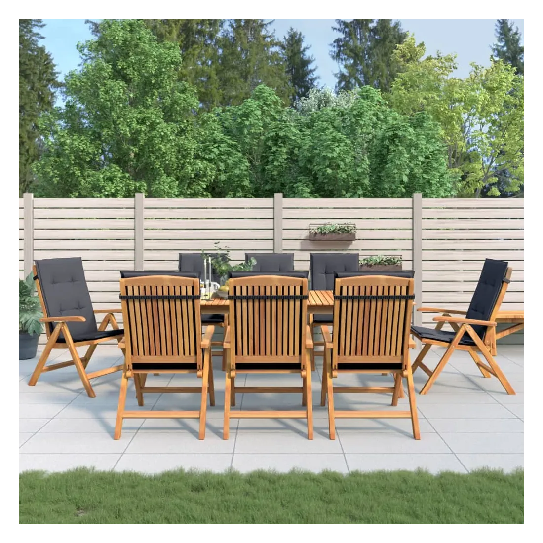 Améliorez le confort de votre espace extérieur avec ces chaises de jardin en bois classiques. Elles sont idéales pour discuter en famille et entre amis ou simplement pour profiter du bain de soleil ! Bois de teck massif : le bois de teck massif est un matériau naturel magnifique. Il a été chevronné, séché au four, puis sablé finement pour lui donner une apparence très lisse. Le bois de teck est connu pour sa résistance exceptionnelle et sa résistance aux intempéries.Dossier réglable : les dossiers des chaises de jardin sont réglables en 6 positions afin que vous puissiez toujours trouver la position la plus confortable.Fonction pliable : la chaise de jardin est pliable, ce qui vous permet de la replier pour gagner de la place lorsque vous ne l'utilisez pas.Assise confortable : la chaise d'extérieur, avec son assise à lattes, ses accoudoirs et son dossier incurvés, s'adapte à votre corps et vous offre un confort optimal. De plus, le coussin moelleux offre un confort d'assise optimal.Coussin antidérapant : des cordes bien conçues et une sangle arrière élastique permettent de fixer facilement le coussin à la chaise et de le maintenir proprement et en toute sécurité. Bon à savoir :Pour que vos meubles d'extérieur restent beaux, nous vous recommandons de les protéger avec une housse imperméable.
