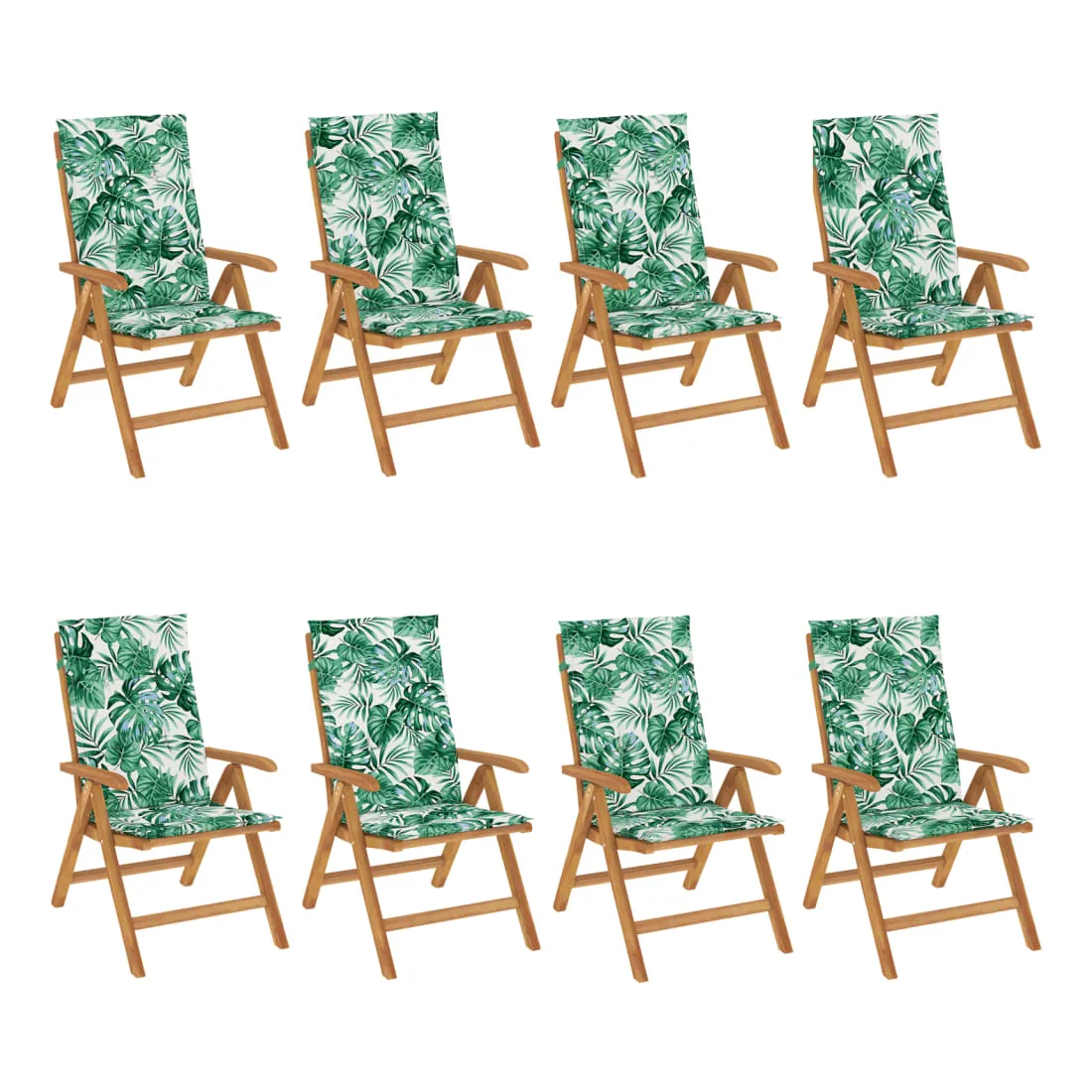 Améliorez le confort de votre espace extérieur avec ces chaises de jardin en bois classiques. Elles sont idéales pour discuter en famille et entre amis ou simplement pour profiter du bain de soleil ! Bois de teck massif : le bois de teck massif est un matériau naturel magnifique. Il a été chevronné, séché au four, puis sablé finement pour lui donner une apparence très lisse. Le bois de teck est connu pour sa résistance exceptionnelle et sa résistance aux intempéries.Dossier réglable : les dossiers des chaises de jardin sont réglables en 6 positions afin que vous puissiez toujours trouver la position la plus confortable.Fonction pliable : la chaise de jardin est pliable, ce qui vous permet de la replier pour gagner de la place lorsque vous ne l'utilisez pas.Assise confortable : la chaise d'extérieur, avec son assise à lattes, ses accoudoirs et son dossier incurvés, s'adapte à votre corps et vous offre un confort optimal. De plus, le coussin moelleux offre un confort d'assise optimal.Coussin antidérapant : des cordes bien conçues et une sangle arrière élastique permettent de fixer facilement le coussin à la chaise et de le maintenir proprement et en toute sécurité. Bon à savoir :Pour que vos meubles d'extérieur restent beaux, nous vous recommandons de les protéger avec une housse imperméable.