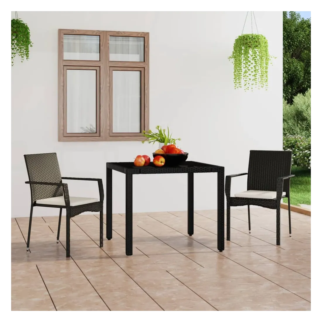 Ces chaises de jardin sont un complément parfait à votre jardin et à votre terrasse, créant une impression durable ! Matériau durable : la résine tressée est un matériau de résistance exceptionnelle et durable dans différentes conditions météorologiques. Elle nécessite également peu d'entretien.Cadre stable : le cadre en acier enduit de poudre assure la robustesse et la stabilité.Expérience de siège confortable : des coussins supplémentaires sont inclus pour votre confort.Remarque :Chaque produit est livré avec un manuel de montage dans la boîte pour un montage facile.Afin de prolonger la durée de vie de votre mobilier d'extérieur, nous vous recommandons de le protéger avec une housse imperméable.