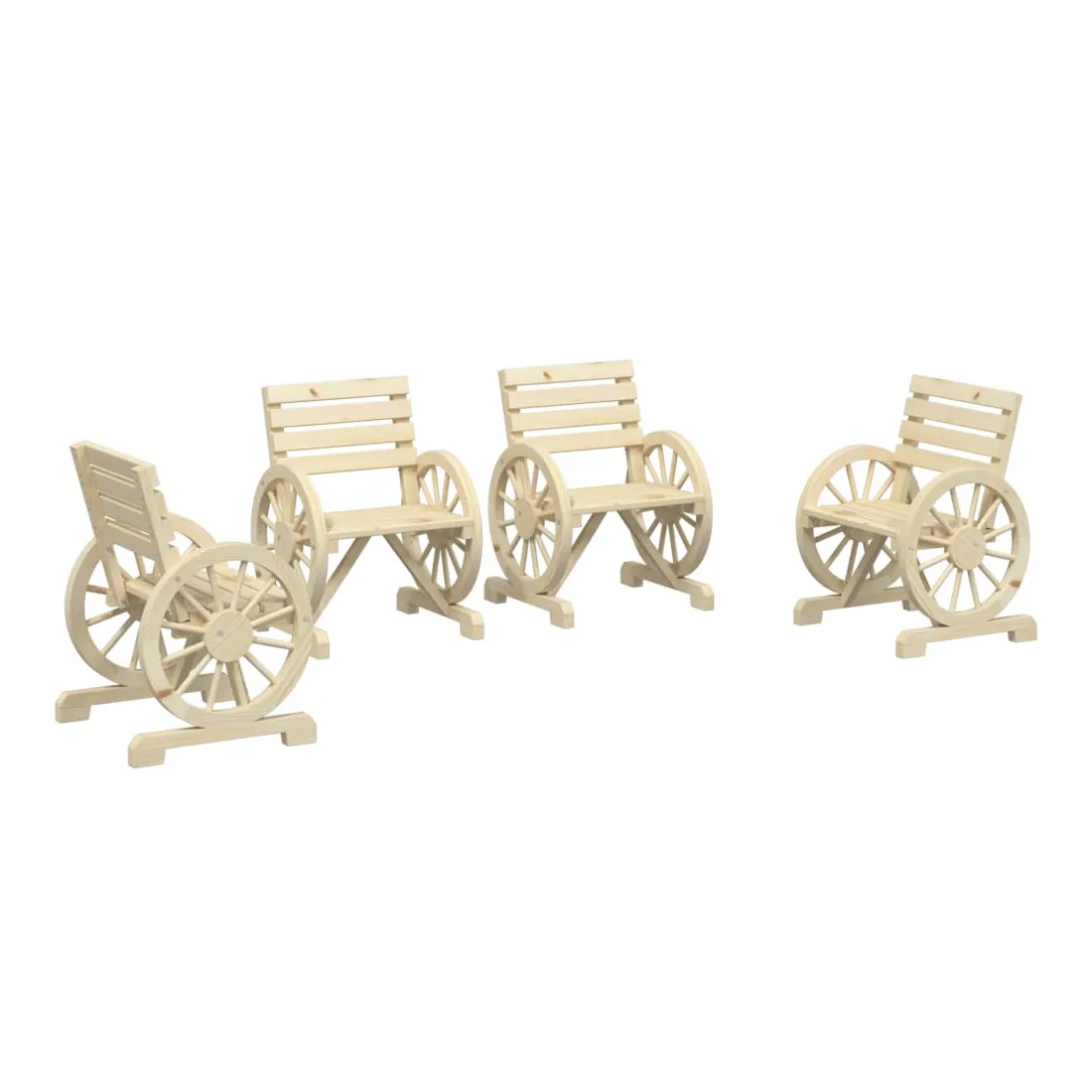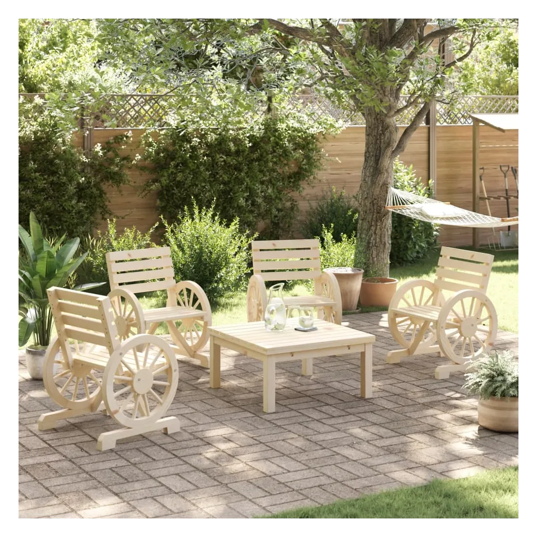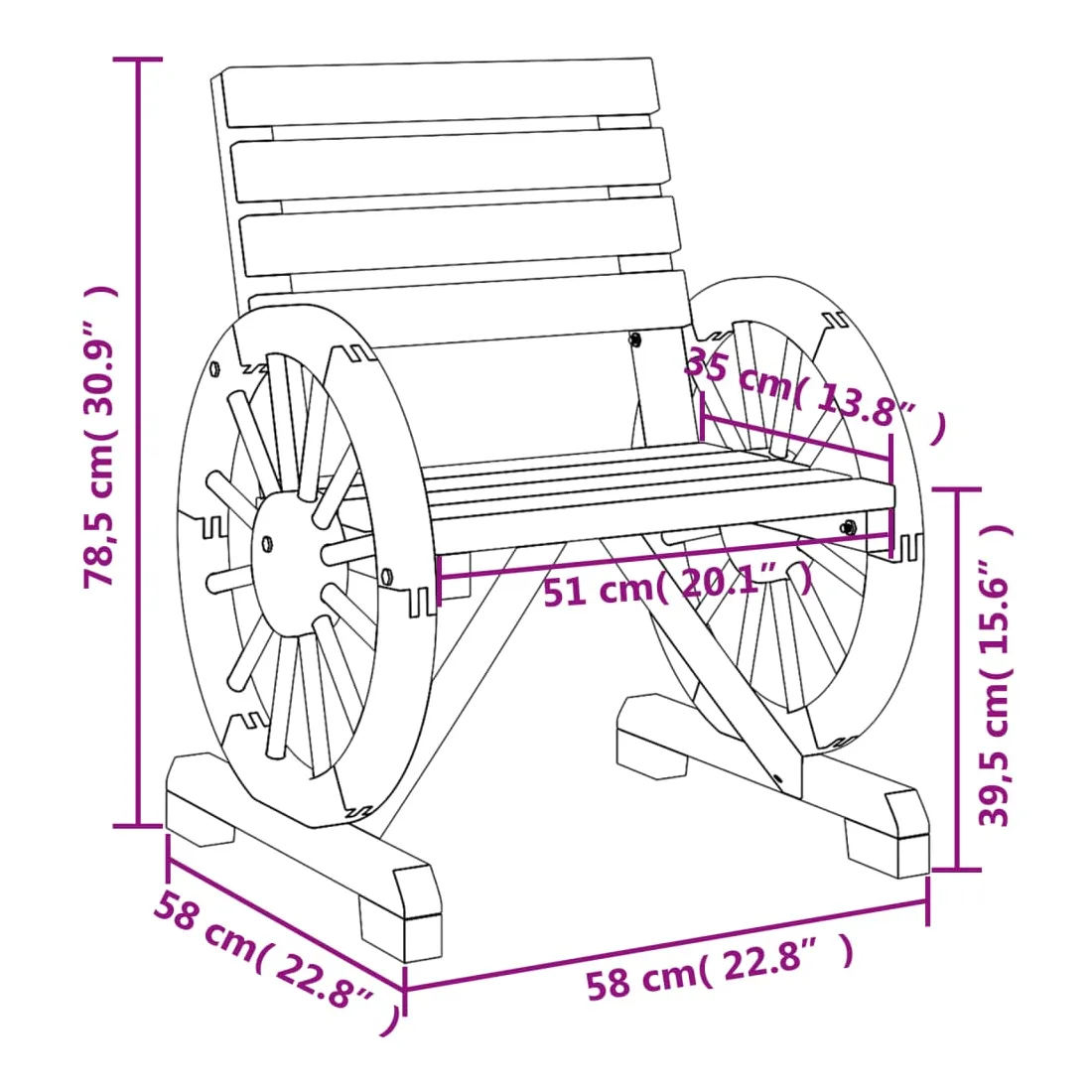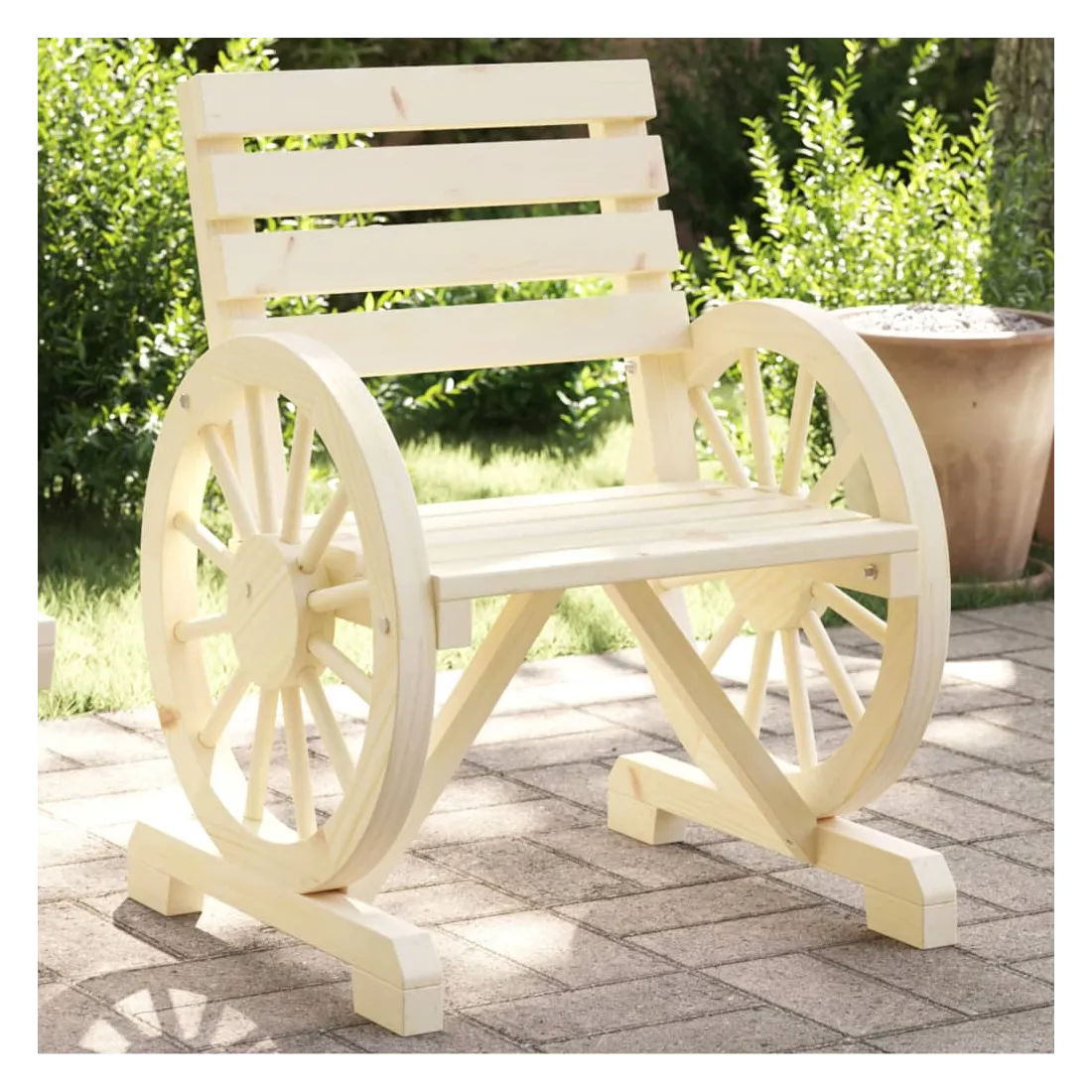 Ces chaises de jardin en bois complèteront à merveille votre jardin, patio ou terrasse, vous permettant de passer des moments agréables avec votre famille ou vos amis. Bois de sapin massif : le bois de sapin massif est un matériau beau et durable qui conserve son intégrité même lorsqu'il est exposé à l'humidité. Il ne sèche pas et ne se déforme pas, ce qui en fait un choix fiable.Expérience d'assise confortable : le dossier et les accoudoirs ajoutent un confort d'assise supplémentaire à la chaise d'extérieur.Design attrayant : les accoudoirs des sièges de jardin présentent un design en forme de roue de chariot qui offre un affichage accrocheur sous tous les angles. Bon à savoir :Pour que vos meubles d'extérieur restent beaux, nous vous recommandons de les protéger avec une housse imperméable.