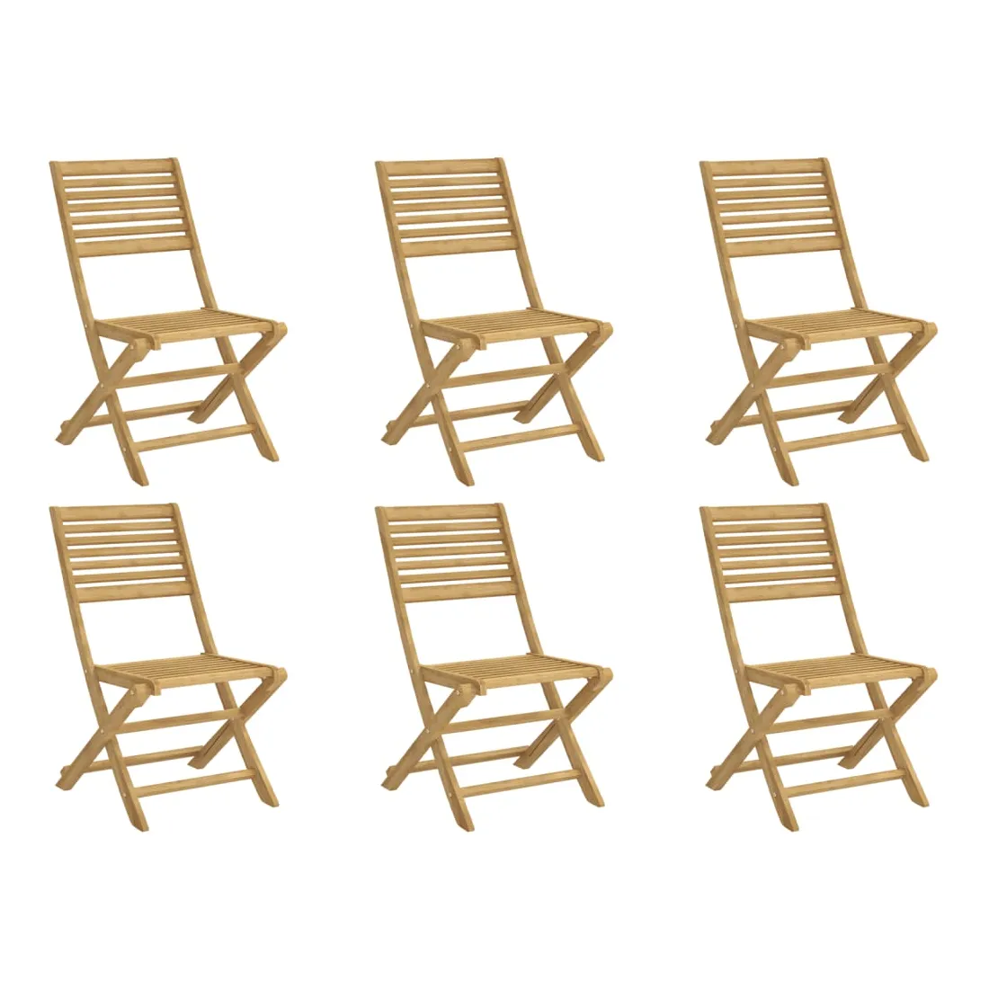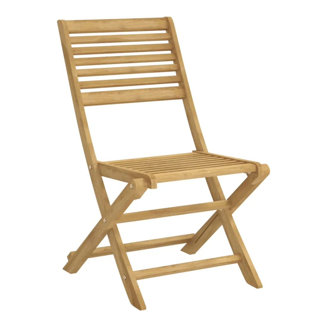 Ces chaises de jardin en bois complèteront à merveille votre jardin, patio ou terrasse, vous permettant de passer des moments agréables avec votre famille ou vos amis. Bois d'acacia massif : le siège de jardin est fabriqué en bois d'acacia massif pour plus de robustesse et de stabilité. Le bois d'acacia massif est un beau matériau naturel. Le bois d'acacia a un grain droit et les nœuds donnent au matériau son aspect caractéristique et rustique.Une expérience d'assise confortable : dotée d'un dossier, la chaise d'extérieur vous offre un confort optimal.Design à lattes : le design à lattes de la chaise de jardin en bois empêche l'accumulation de l'eau, ce qui permet de garder le siège au sec et d'éviter un pourrissement inutile.Design pliable : la chaise de patio peut être facilement pliée lorsqu'elle n'est pas utilisée, pour un rangement et un transport faciles. Bon à savoir :Pour que vos meubles d'extérieur restent beaux, nous vous recommandons de les protéger avec une housse imperméable.