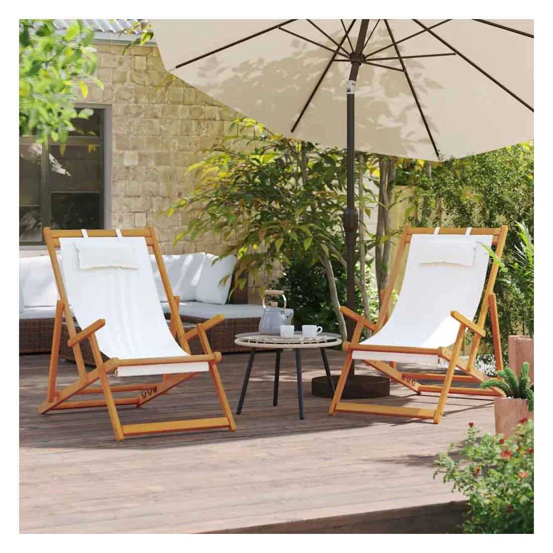 Détendez-vous dans ces chaises inclinables sur la plage, le camping ou dans votre jardin ! Fabriquées en bois d’eucalyptus massif et en tissu polyester, les chaises de plage pliables sont résistantes aux intempéries et très durables. Tissu durable : le tissu présente un aspect simple et épuré tout en restant respirant et durable.Cadre robuste : ces table longues sont construites avec un cadre en bois, ce qui leur confère robustesse et stabilité.Design réglable et pliable : les chaises de camping peuvent être ajustées en 3 positions d'inclinaison pour un confort optimal. En outre, les chaises de plage peuvent être pliées pour faciliter le transport et le stockage lorsqu’elles ne sont pas utilisées.