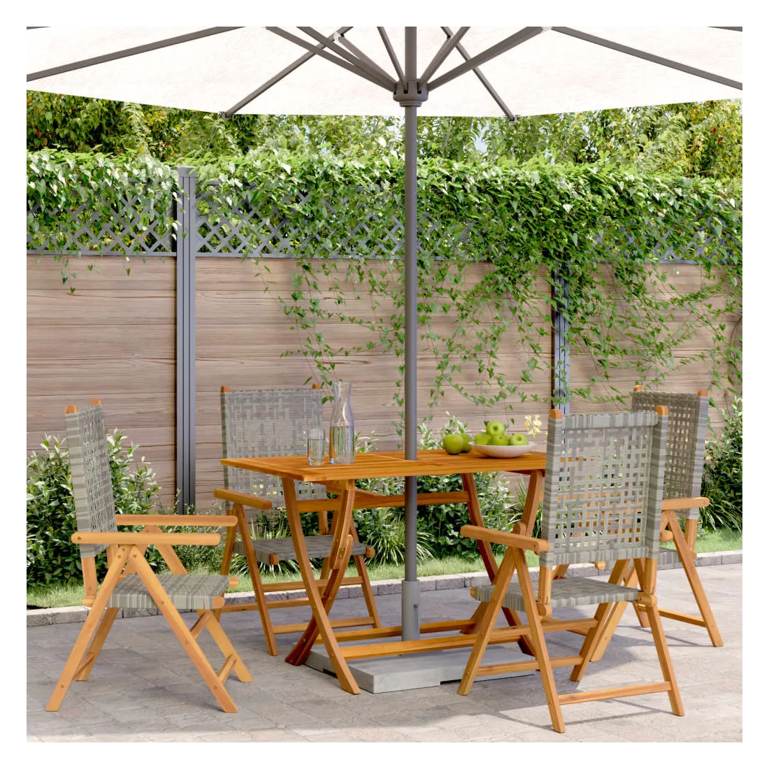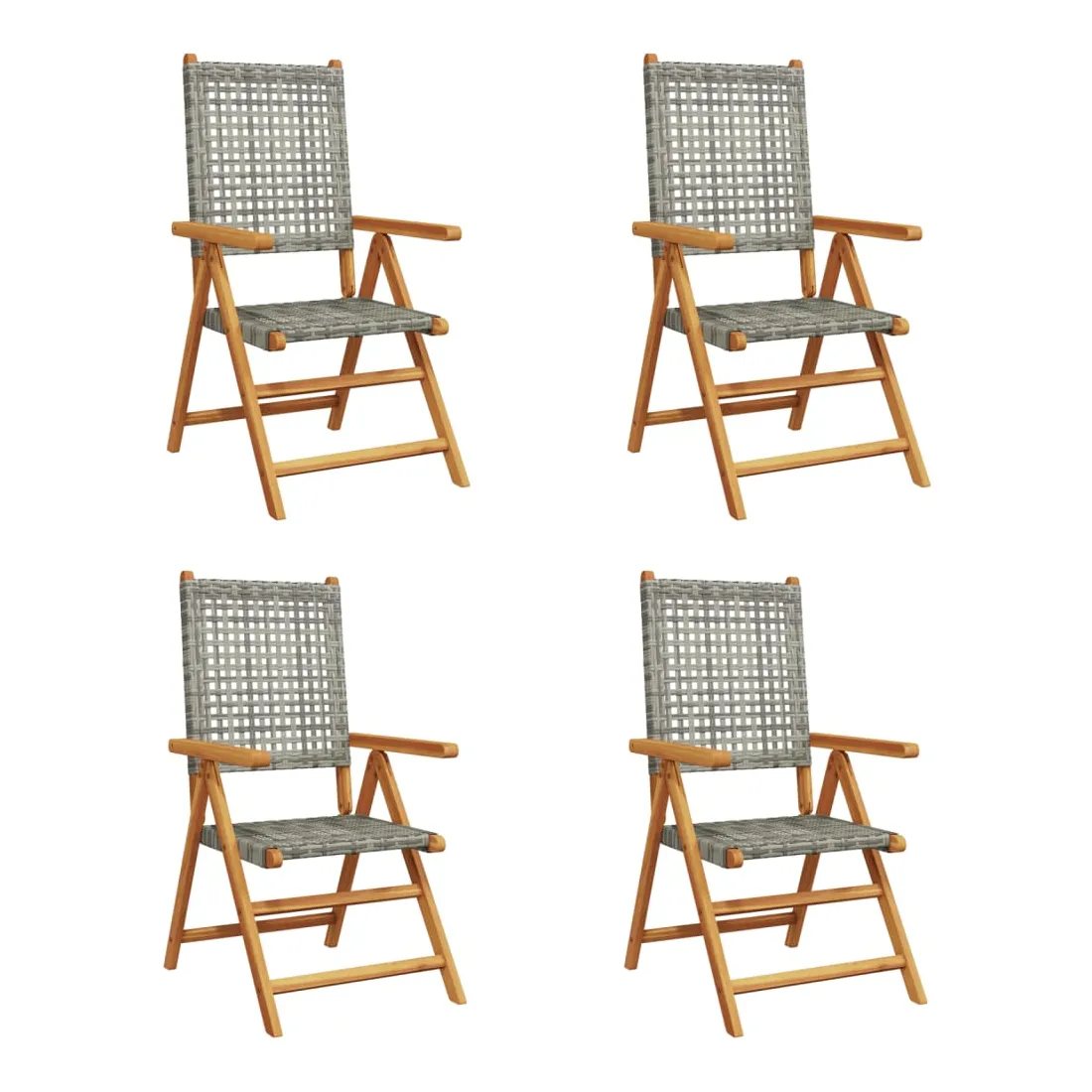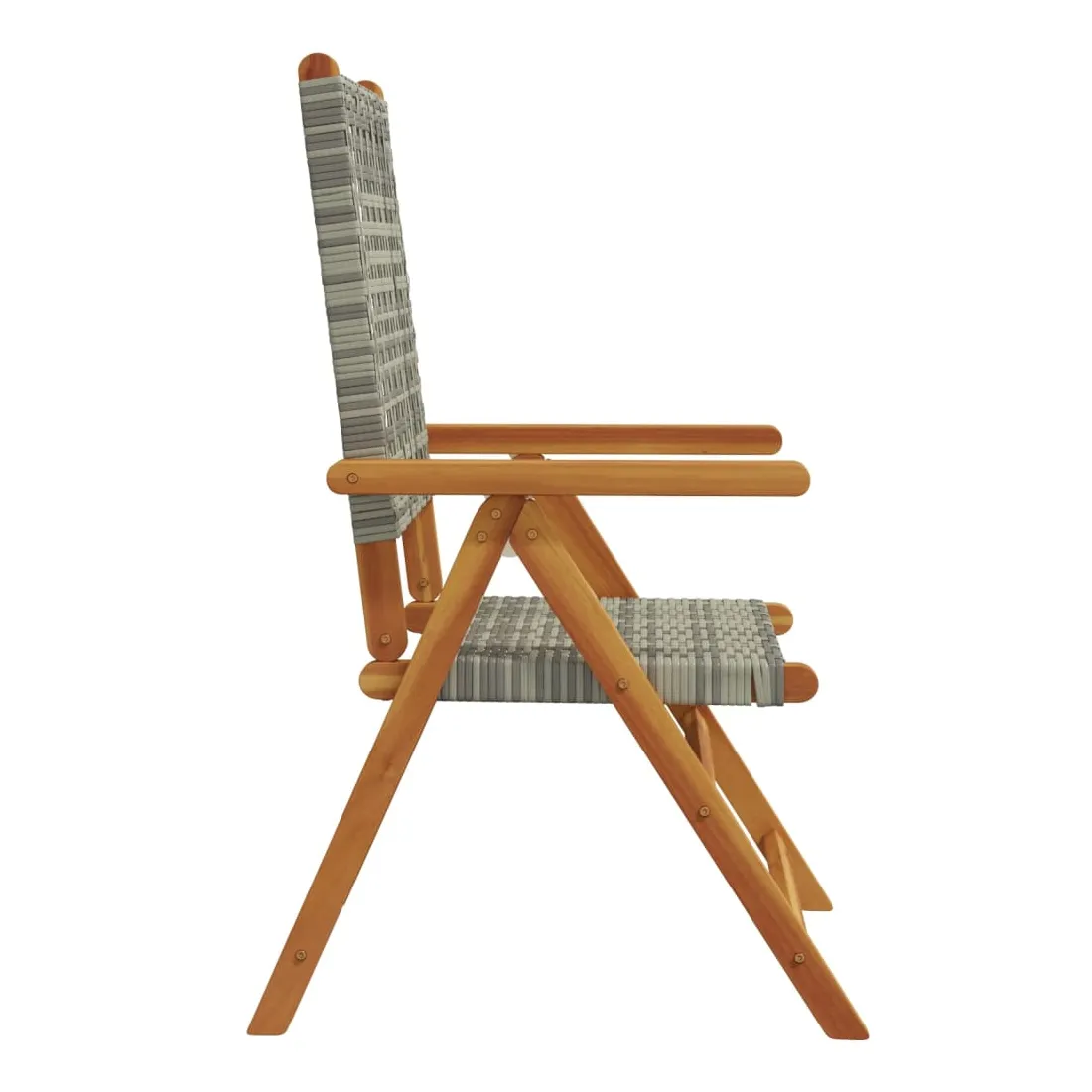 Détendez-vous et profitez de l'extérieur dans ces confortables chaises de jardin inclinables ! Robuste et stable : le bois d'acacia massif est connu pour sa solidité et sa durabilité. Ses couleurs variées et ses grains uniques lui confèrent un aspect attrayant. Sa stabilité et sa résistance aux intempéries en font un matériau idéal pour la fabrication de meubles d'intérieur et d'extérieur.Matériau durable : la résine tressée, également connue sous le nom de poly rotin, est un matériau synthétique solide et nécessitant peu d'entretien qui ressemble au rotin naturel. Il est léger, facile à nettoyer et couramment utilisé pour les meubles d'extérieur en raison de sa durabilité et de ses propriétés de résistance aux intempéries.Fonction d'inclinaison : le siège de jardin est spécialement conçu avec une fonction d'inclinaison afin que vous puissiez régler le dossier selon votre confort.Facile à transporter et à ranger : la chaise peut être facilement pliée lorsqu'elle n'est pas utilisée, pour un rangement et un transport faciles.Conception pratique : la main courante en bois, pratique et plate, vous permet de poser vos mains dessus tout en profitant d'un moment en plein air. Bon à savoir :Pour que vos meubles d'extérieur restent beaux, nous vous recommandons de les protéger avec une housse imperméable.