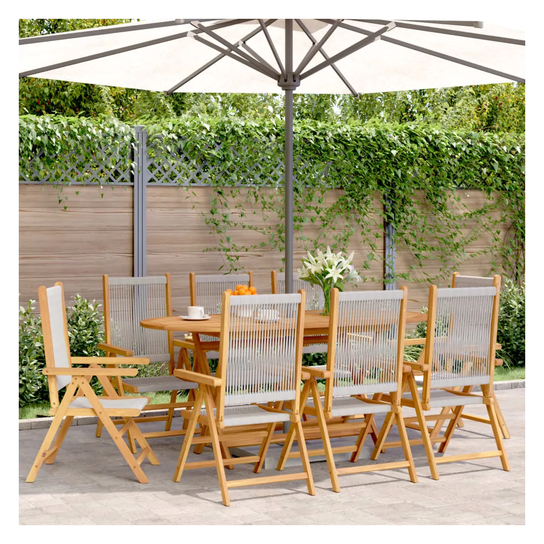 - Matériau : bois d'acacia massif avec finition à l'huile, polypropylène