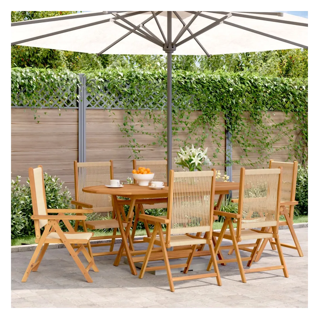 - Matériau : bois d'acacia massif avec finition à l'huile, polypropylène